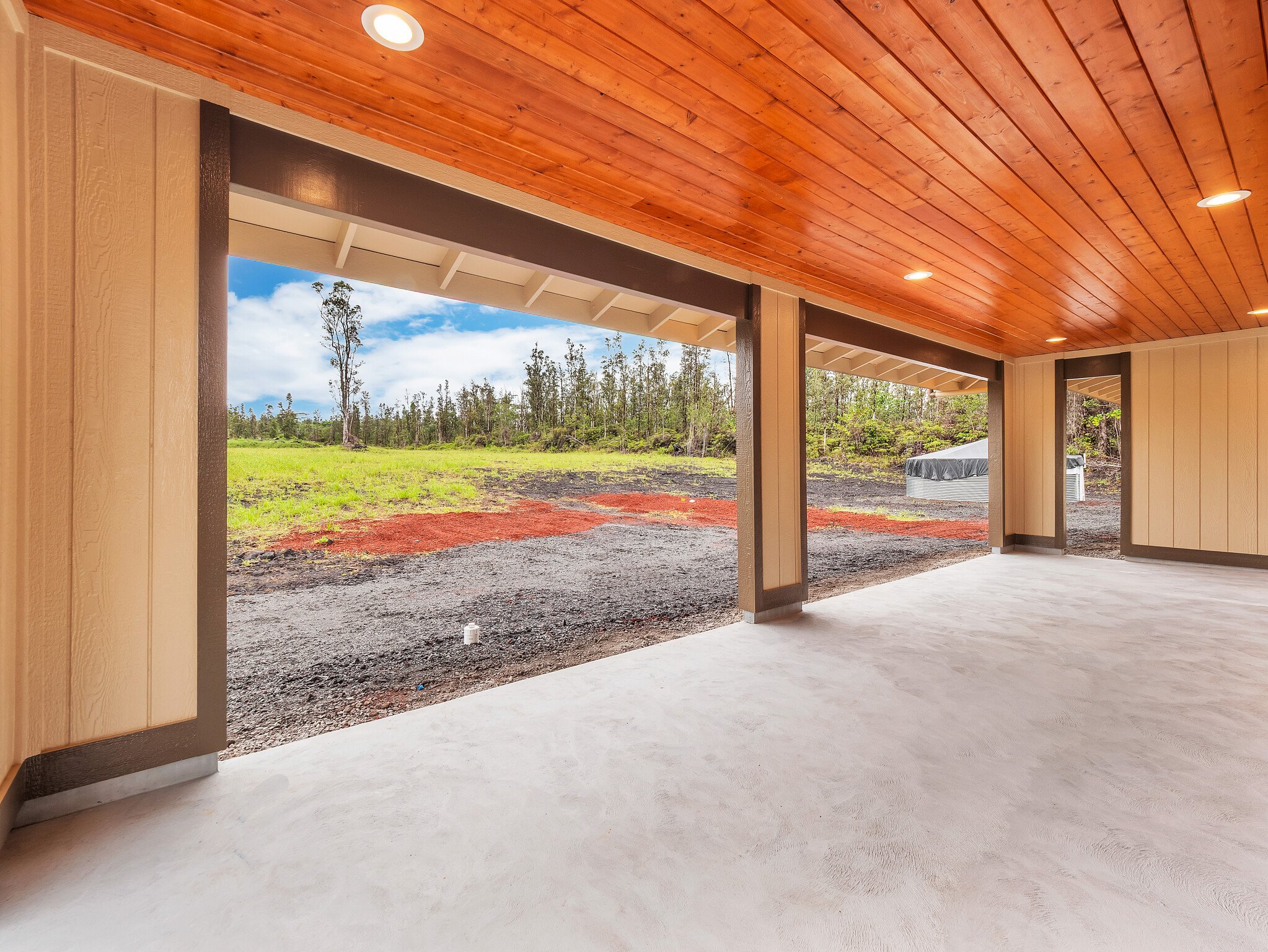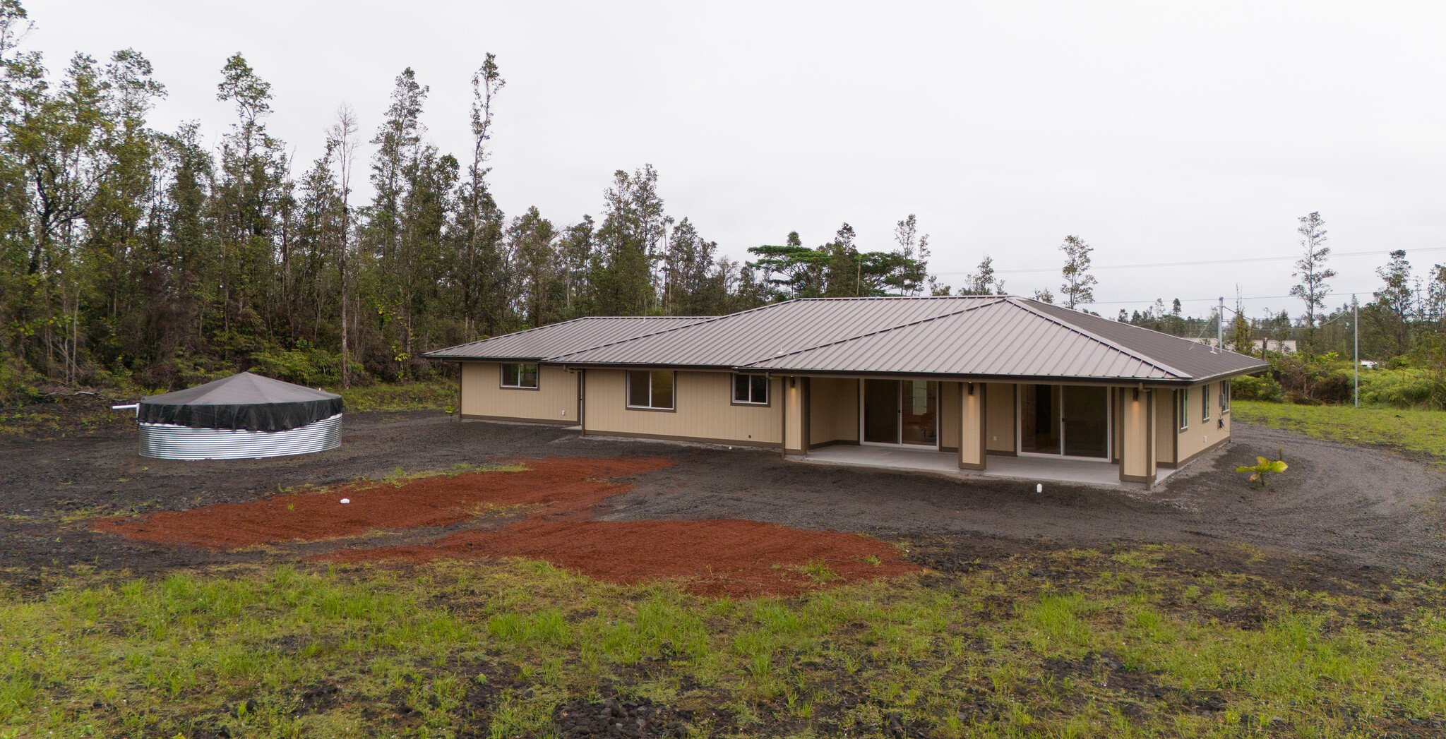 Welcome to your brand new home in Hawaiian Acres Subdivision, located on desirable paved Moho Rd. Enter through the custom gate into your 3 acre property with over 2 acres cleared.Beautiful entertainment built in, showcases the electric fireplace, space for wall mounted TV and hardwood shelving.The kitchen comes fully equipped with brand new appliances, a beautiful waterfall granite counter and some glass paned cabinet doors.The spacious primary bedroom has its own custom outfitted closet and an ensuite bathroom. Offering both a soaker tub & a separate shower, this bathroom will have you feeling like you left the spa. The primary bedroom also has private access to the outdoor back lanai.All rooms feature beautiful tongue and groove tray ceilings. The two other bedrooms offer possibilities for family rooms or an in-house office. In the hallway find a spacious pantry with a barn door, or use it for other storage. Indoor laundry room for convenience fully equipped with a folding table and sink. The two car garage offers ample covered parking or storage with an enclosed machine room.This location in Hawaiian Acres takes you conveniently via the back road to Pahoa or to the main highway, making it a good central location.