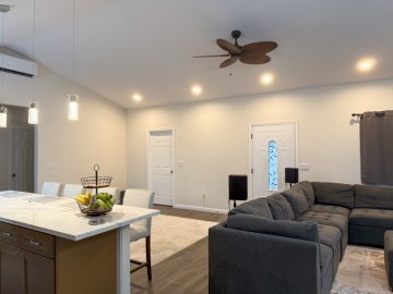 Escape to your own piece of paradise in Orchid Land Estates with this well-maintained 1-bedroom, 1-bath home situated on 2 cleared acres. Surrounded by natural beauty, the home offers a cozy 672 sqft of living space and features a separate detached shed perfect for a workshop, art studio, or additional storage. The kitchen has a convenient eat in bar, with open concept living. Enjoy added privacy, security and peace with the Hawaii County Animal Control as your next-door neighbor.