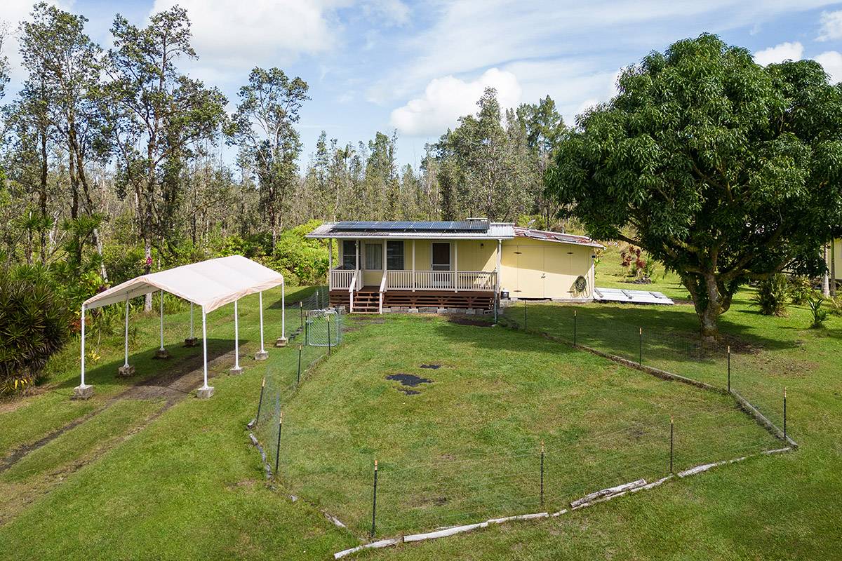Aloha and Welcome to this turn key opportunity on 3 acres in Hawaiian Acres.This conveniently located property is only a block off of the pavement and is easily accessed either through Ainaloa from Highway 130 or from Moho Rd (8 Rd) from the Volcano Highway.Lovingly landscaped property has privacy ensured with a four hundred foot driveway which leads in past grassy lawn, fruit trees, and rock planters, with a Gazebo behind the home.There is the main home which is a one bedroom with a full bathroom, and a great kitchen, Also you'll find an ohana cabin ready for your finishing touches.The property includes the following attributes:* Totally off grid with 3000w solar panels, 3.8kwh 48v lithium battery, Outback controller and two back up generators! * Fully furnished with all appliances including electric refrigerator, propane stove, propane dryer, washing machine, microwave, dehumidifier, back up new water pump, and on demand water heater. * High speed internet with transferable Starlink Satellite Internet, all equipment to transfer. * Tools for maintaining the yard including a riding mower, and walk behind mower, chainsaw, brush cutter, hedge trimmer, air compressor, rotohammer, Ryobi cordless tools, hand tools, socket set, ladders, gorilla cart, gardening tools, all you need! * Additional house pad on property with utility poles and loads of cinder in preparation. * Property pins are visible with three full acres partly landscaped with room for more.Home is unpermitted. Clearly there is much to offer and great value with this property and everything that is included. Come and see it today, bring your suitcase and move on in!