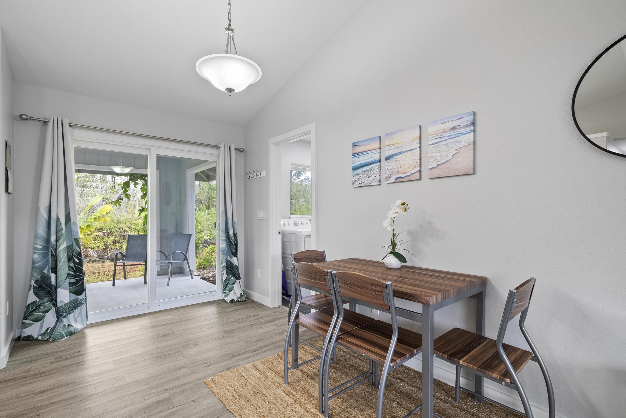 Property Highlights: ~ Single level home with approximately 1,816 sqft under roof ~ Energy efficient Water Heater ~ Large Covered Lanai ~ Open Style Kitchen with an Island and Pantry ~ Includes Range, Microwave Hood, Disposal and Refrigerator ~ Tiled Walk-in Primary Suite Shower and Hall bathroom has a Tub/tiled shower ~ Beautiful Tile work and elegant Fixtures ~ Insulated Home ~ Vinyl Floor ~ Very convenient 3rd full bath access off of laundry room & garage ~ Storage Closet in Garage ~ UV Light water filtration system ~ Concrete driveway ~ Fully enclosed garage finished with epoxy paint and flakes ~ Spacious 12,000 sq ft lot ~ Paved roads with Cable Internet, TV and Phone available in the area (check cable company) ~ Located Lava Zone 3 ~ Fully furnished with Island Decor