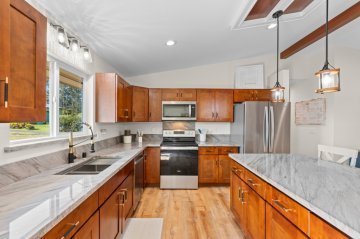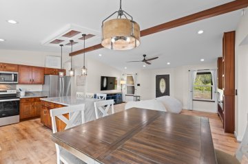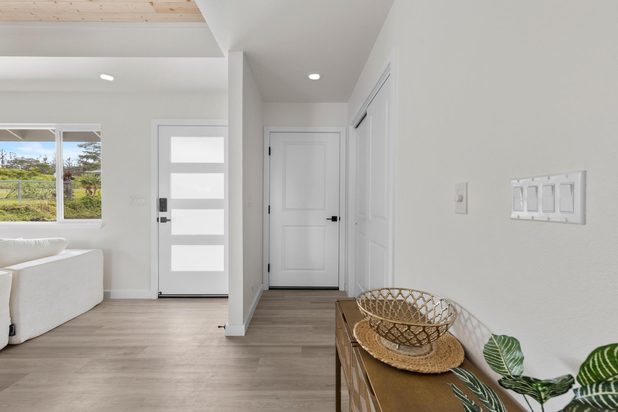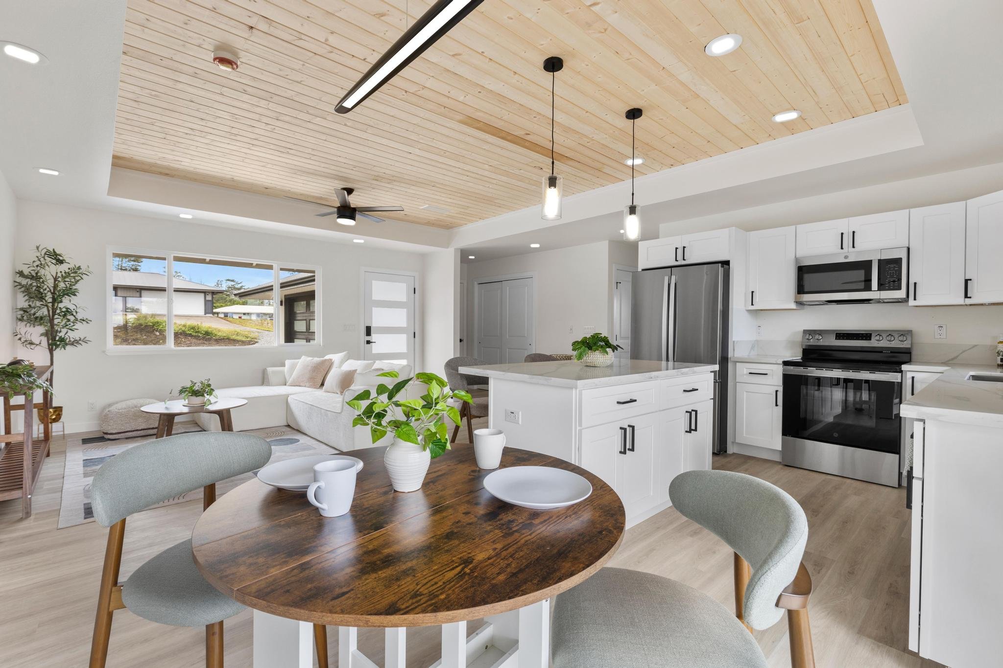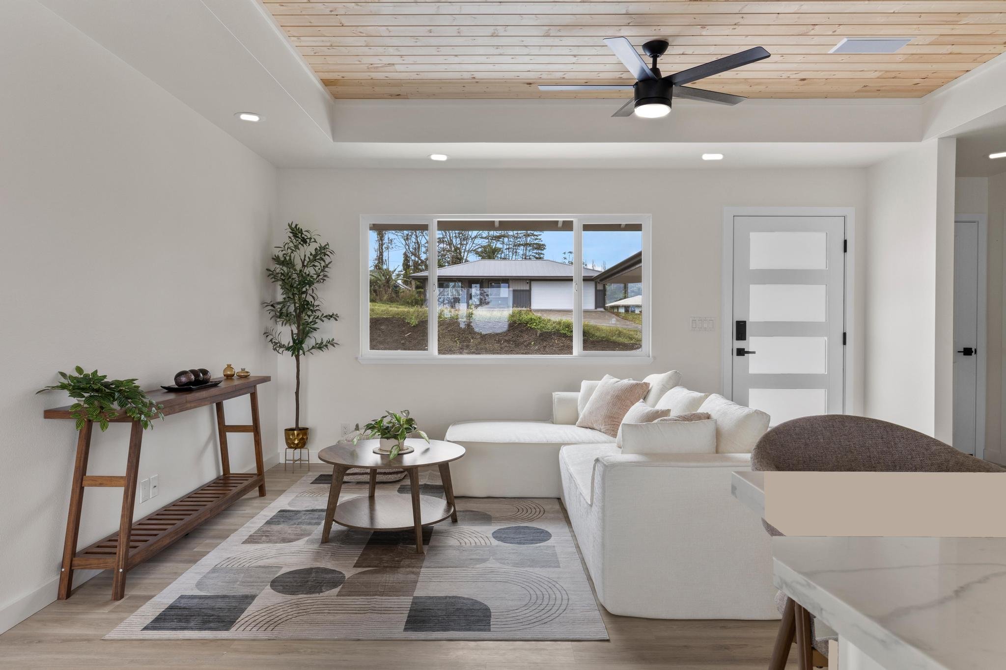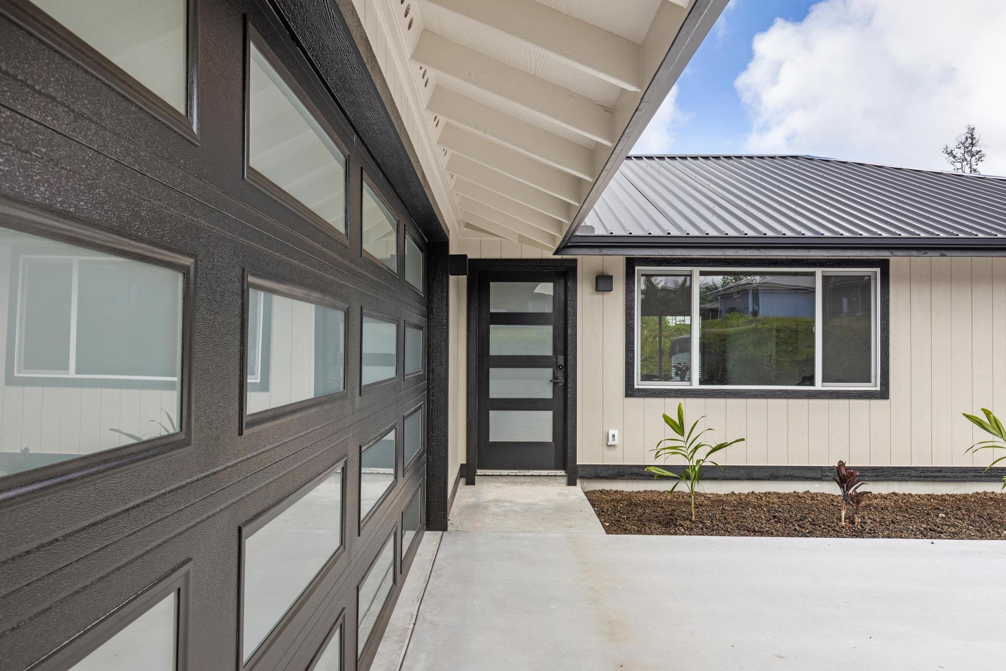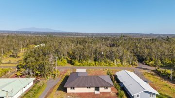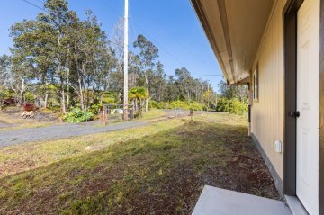 Welcome to this beautifully designed 3 bedroom, 2 bath home located on Emerald Drive in the desirable Ainaloa Subdivision. If you’ve been searching for a brand new home with an enclosed garage, this property checks all the boxes. Step inside to an open concept living area featuring raised ceilings with accented tongue and groove detailing, creating a bright and spacious feel. The functional layout offers comfort and flexibility for full time living, investment, or a second home on Hawai‘i Island. The primary suite includes a generous walk-in closet and a spacious ensuite bathroom with a walk in shower. The main bathroom features a full bathtub, ideal for guests or family. Storage is abundant throughout with multiple closets and a dedicated pantry for added convenience and organization. The enclosed 2 car garage is a rare and highly desirable feature in Ainaloa, offering secure parking, additional storage, or workspace potential. A concrete pad fronts the garage, providing additional parking and clean curb appeal. The exterior is thoughtfully finished with low maintenance cinder ground cover, providing a clean, practical landscape with minimal upkeep. Keiki palm trees front the home, adding a welcoming tropical touch and enhancing curb appeal. Conveniently located near Pāhoa, Keaau, and a short drive to Hilo, you’ll enjoy neighborhood living with access to everyday amenities. Move-in ready and thoughtfully designed, this is a fantastic opportunity to own a 3 bedroom, 2 bath Ainaloa home with an enclosed garage. All appliances included!