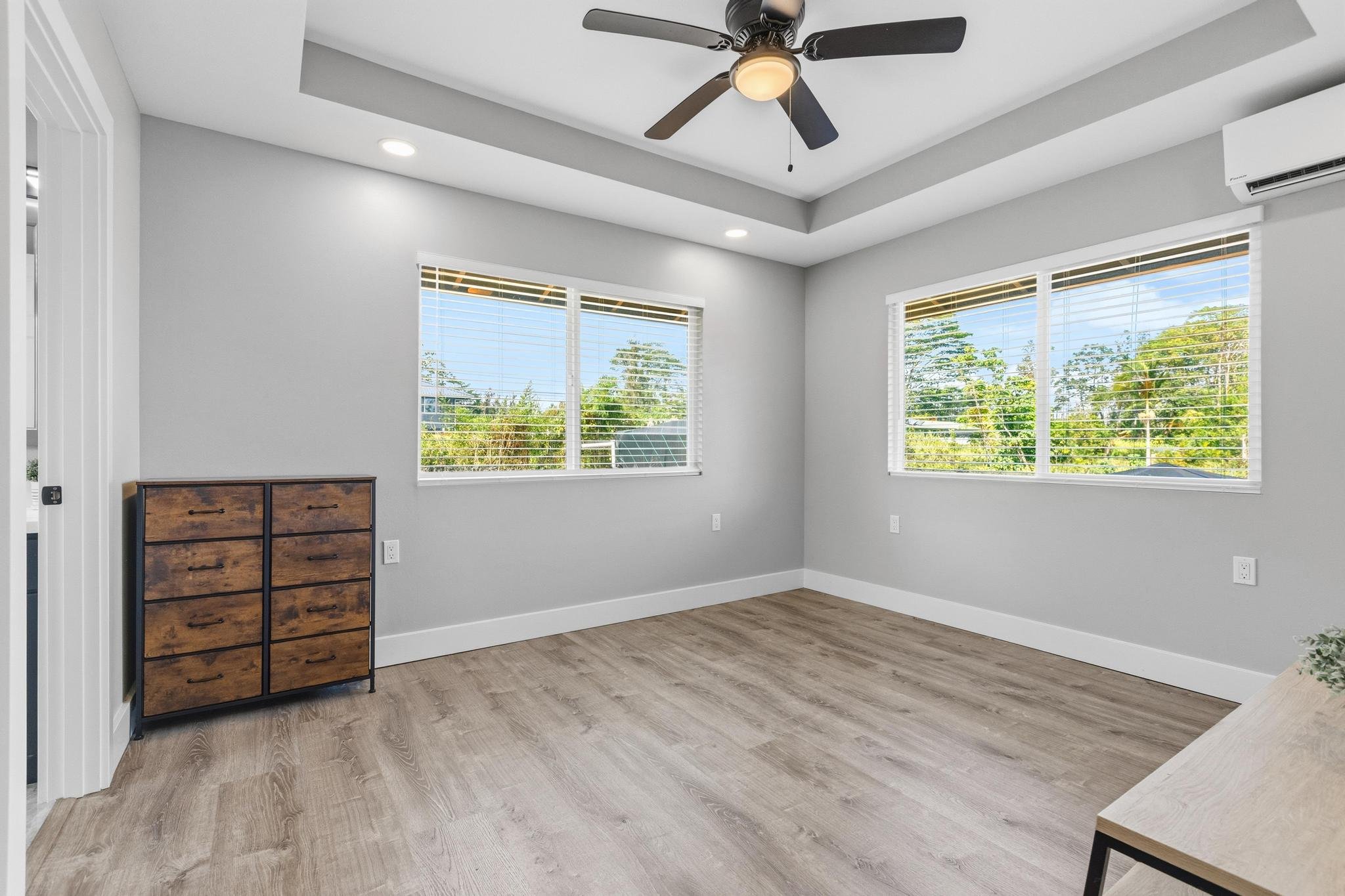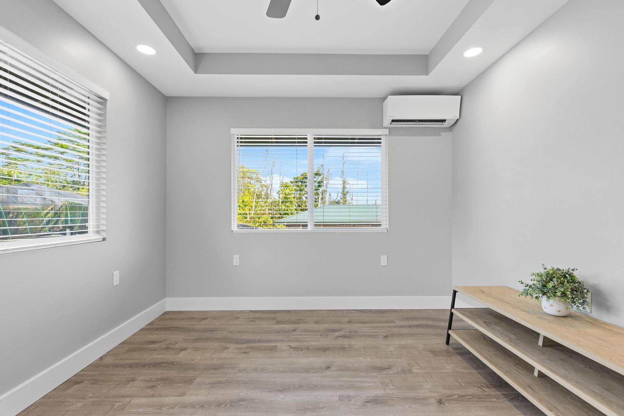 Welcome to Ainaloa — where modern island living meets peaceful forest surroundings.This newer home is thoughtfully designed for comfort and style, offering quality craftsmanship and inviting details throughout. Step inside to an open, light-filled living area featuring vaulted ceilings, custom finishes, and a modern kitchen that’s perfect for gatherings. The covered lanai invites you to relax and take in the beauty of the native landscape, while the spacious interior offers all the conveniences of a newer build. The primary suite offers a calm retreat with a tray ceiling, walk-in closet, double vanity, and a beautifully tiled shower.**Property Highlights:** * 2-car garage with concrete driveway * UV water filtration system * Indoor laundry with folding area *Newly installed AC Split Units *LG Smart Refrigerator *Newer Appliances-barely used * Waterproof vinyl flooring; granite tile in bathrooms * Vaulted living room ceiling * Custom blinds and accent wall in living area * Granite countertops with soft-close cabinets and drawers * Custom tiled shower/tub combo * Mirrored closet doors * Recessed lighting and ceiling fans throughout *Couch, Bar Stools and Bed Included in SaleBuyer and Buyer's agent to investigate all pertinent and material facts.