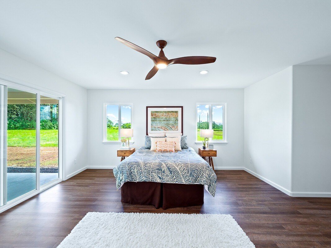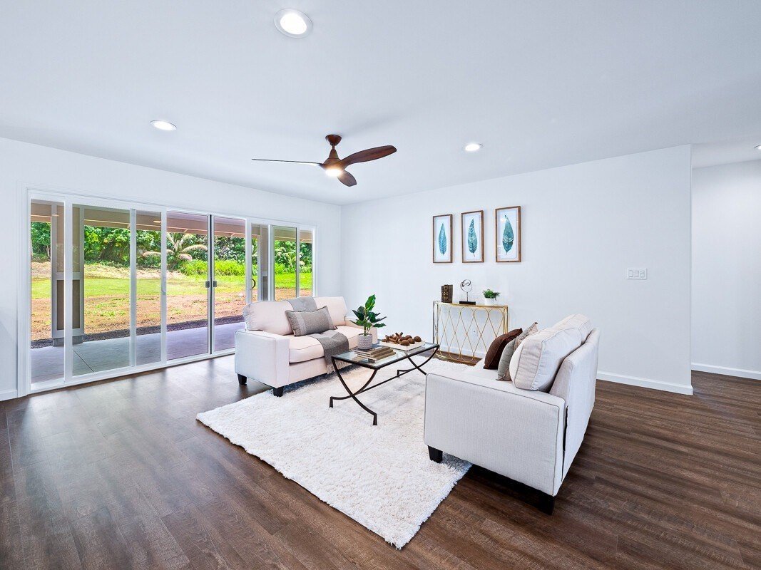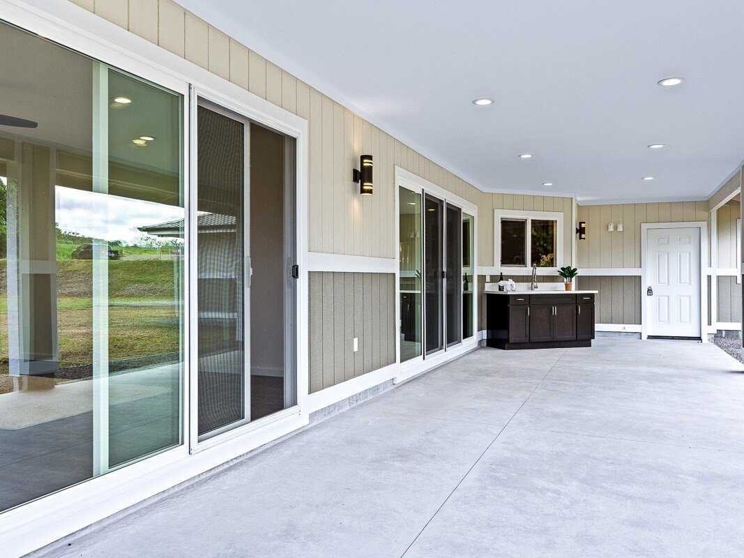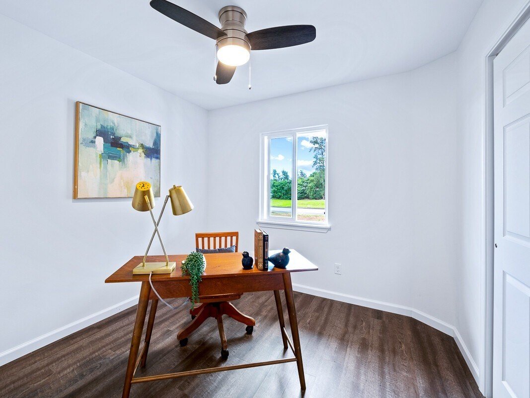 If you’re looking for a brand new home with plenty of space inside and out, don’t let this opportunity pass you by! This just-completed custom build in Keaau’s newest subdivision, Ola Hou Estates, offers 2200+ sf of interior living space, plus two covered lanais, on a one acre lot only minutes from Hilo.As you enter the home, you’re greeted by an expansive, open concept living/dining area. The space is large and flexible, offering options for seating areas. You’ll never run out of counter space in the well-designed kitchen, which features both an island and a peninsula in beautiful, durable quartz. Storage won’t be a problem either with tons of cabinet space and a walk-in pantry. The light-filled primary suite is the perfect retreat, featuring a large bedroom, sliding door access to the rear lanai, dual walk-in closets, and a beautifully tiled walk-in shower with rain-shower head. You’ll have lots of privacy too, as the split floor plan places the other two bedrooms on the opposite side of the house. Working from home? No problem! There’s a dedicated study/home office waiting for you to plug in. Your back lanai is fitted with a large outdoor sink and cabinet for easy entertaining. The huge, level backyard is just waiting for your personal touches - a pool, garden, workshop, whatever your heart desires! You also have a welcoming front lanai, which makes a lovely entrance to the home.Ola Hou Estates is a new development in Keaau town, in a convenient location one mile from the Keaau Shopping Center for easy shopping and seconds away from the Keaau-Pahoa Bypass Road for easy access to Hilo. Even though it’s so close to amenities, it’s tucked away off the main roads so there’s a sense of privacy - and with only 35 lots in the subdivision, you’ll never have to worry about it being over crowded. The subdivision features county water, county-maintained roads, high speed fiber internet from Hawaiian Tel. Come check it out today before it’s too late!