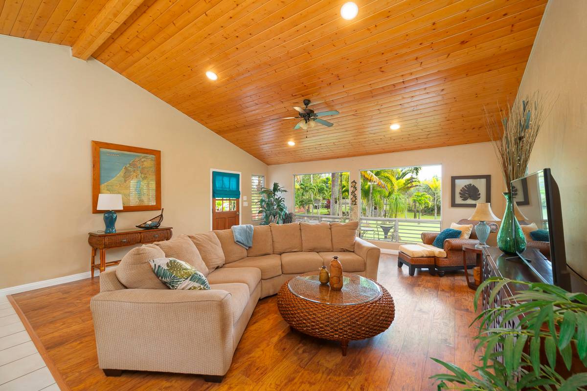 Live out your dream in this well maintained home on 3+ manicured acres in Orchidland Estates! This spacious single-level home is warm and inviting, offering an open concept main living area, a sun-filled living room, vaulted pine ceilings, hardy vinyl/ceramic tile flooring, large windows, a custom walk-in pantry, indoor laundry and an enclosed garage w/plenty of storage space.