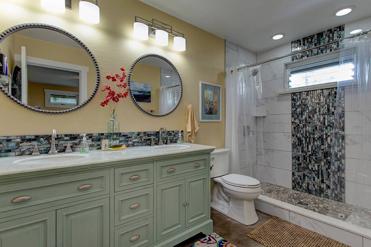 The separate guest house in the back is simply amazing! Although not permitted, it is truly a special place to enjoy for yourself, or to offer to visiting family and friends to stay. The outdoor surfboard shower is soooo cool! The guest house will be sold fully-furnished.