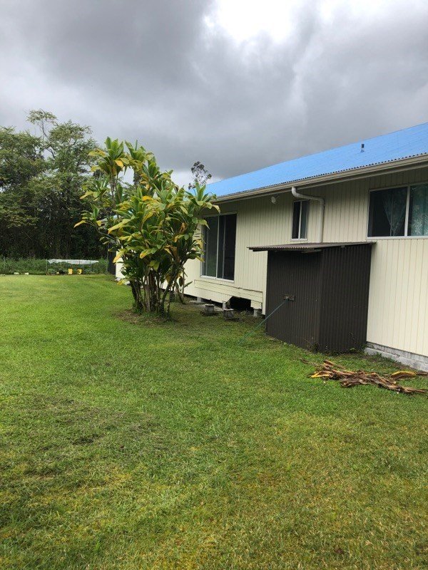 Captivating ambiance, large home on a 3 acre parcel in the beginning of Hawaiian Acres Subdivision. The maintained and manicured yard has a lemon tree, papaya tree and ornamental hibiscus trees. Don't let me forget the two boxed hand gardens with ready to eat veggies. A two car garage with garage door is on the side of the home which has an entrance into the laundry area. Front and center is a porch overlooking the beautiful yard. Entering the home you can't help but notice the high open beam ceiling in the living room. The large wall space is great for art work, heirlooms or decor of your choice. This private & super spacious property is ready for someone to arrive and convert it to their own.