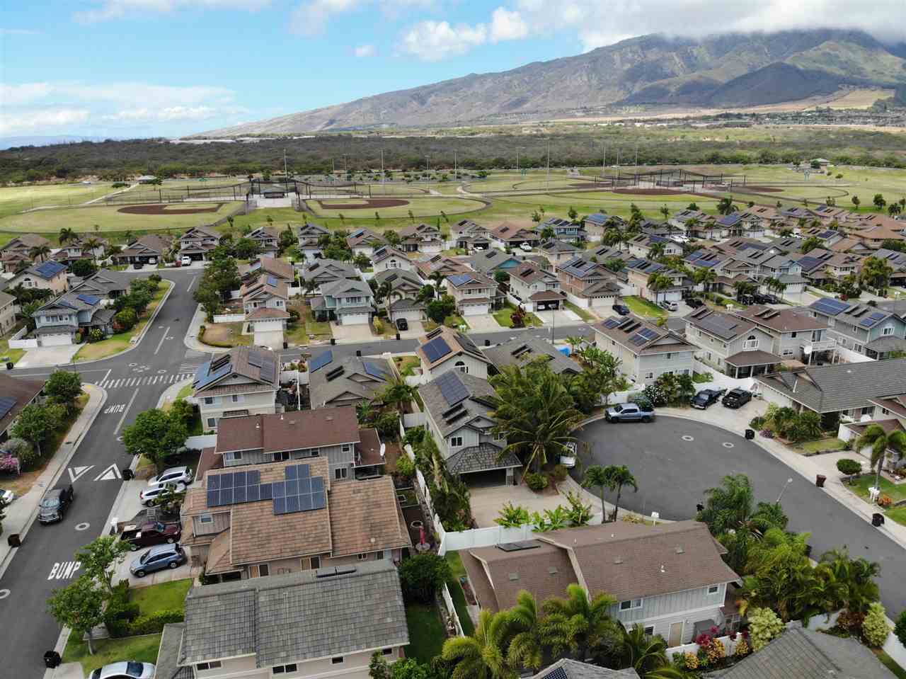 Lushly landscaped 3 bed/2.5 bath located at the end of a quiet cul-de-sac in the popular Legends at Maui Lani. All 3 bedrooms are located on the upper floor and the home is kept cool with central AC powered by a PV system. Impeccably maintained home has many eco-friendly upgrades such as high efficiency appliances, ultra-efficient shower heads, ceiling fans and dual flush toilets. Security of the backyard is enhanced with a partially enclosed PVC privacy fence. Mature tropical landscape adds to privacy and is easily maintained with an automatic irrigation system. The oversized L-shaped driveway can easily accommodate 4 cars or provide room for activities. Located in central Maui, adjacent to The Dunes at Maui Lani Golf Course, this home has quick access to shopping, schools, restaurants and Maui Memorial Hospital. Call your favorite agent today to book a showing.