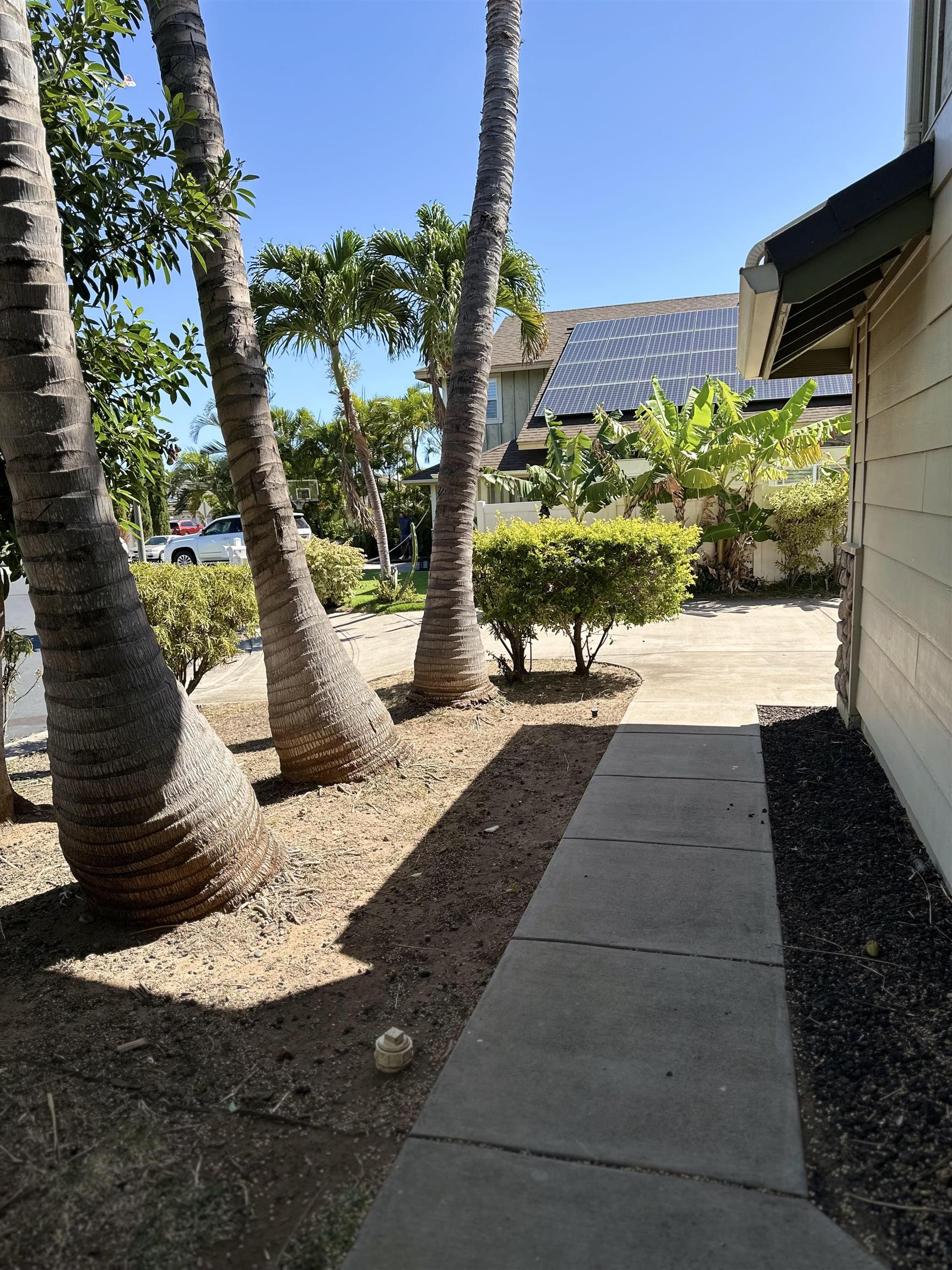 Spacious and bright 2-story 3 bedroom, 2.5 bathroom home offers convenience, comfort, and opportunity to live , work, and play within the highly desirable community of The Legends at Maui Lani. Situated at the end of a quiet cul de sac, fenced, and surrounded by mature tropical landscaping offering additional privacy. All 3 bedrooms are located upstairs and the home is kept cool with central ac powered by a PV SMA inverter. Open living room, dining, and kitchen occupies the lower level with 2 sliding doors to access the backyard. In addition to the attached garage, the L shaped driveway has room for 4 additional vehicles. Walking distance to The Dunes at Maui Lani Golf Course, this home has quick access to shopping, schools, restaurants, airport, and hospital and clinics.