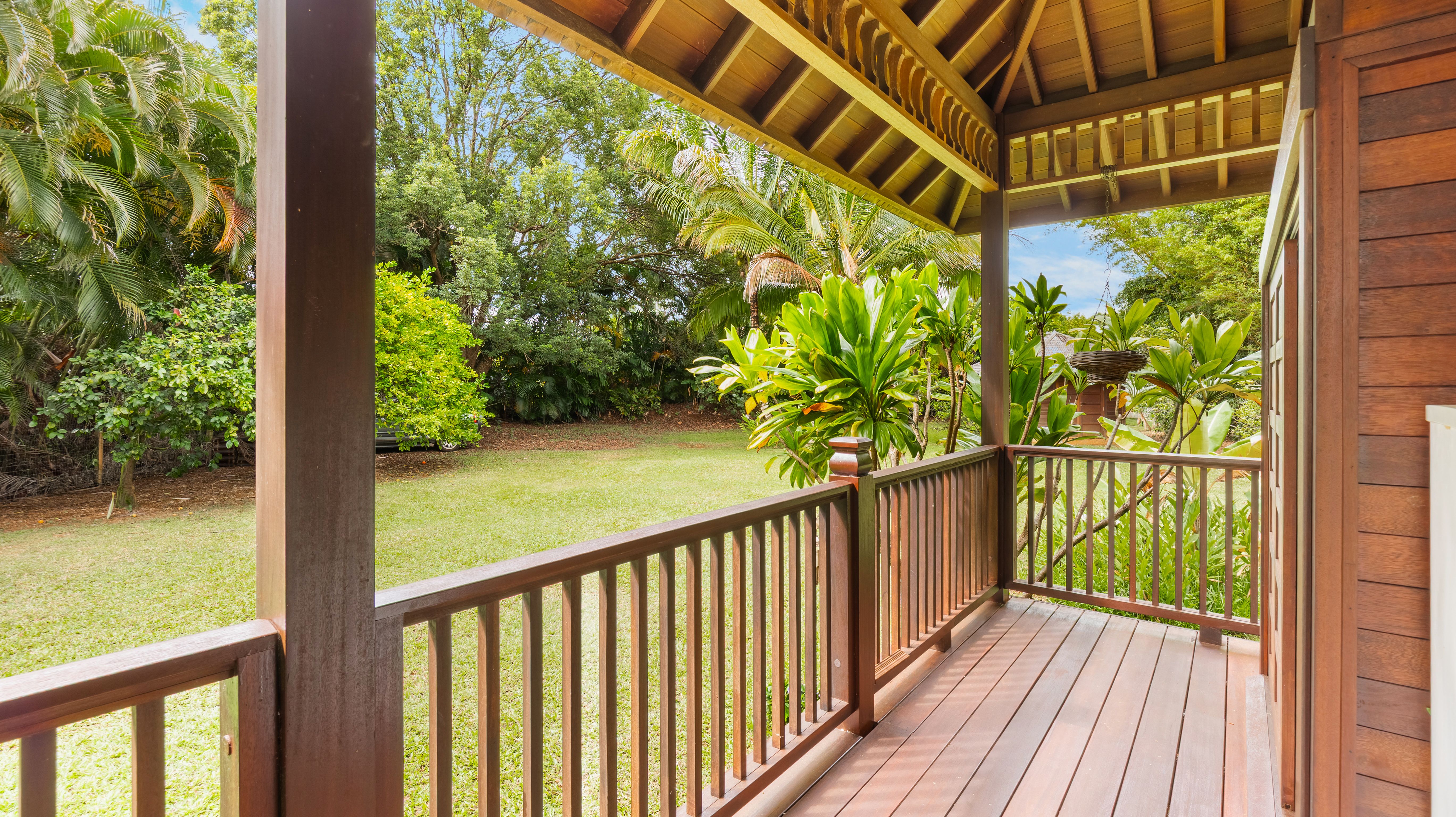 Rare Makaleha Mountain Retreat Experience island living at its finest in this custom-crafted 2-bed, 2-bath home designed by Bal’e Maker. Nestled at the base of the Makaleha Mountains, it blends artistry, durability, and comfort with seamless indoor-outdoor living. Precision Craftsmanship Featuring an Ironwood roof and rich Merbau hardwood throughout most of the home, complemented by natural stone and tile in the baths. Vaulted ceilings and expansive windows frame panoramic mountain views from bedrooms, living room, and the covered lanai. Thoughtful Details * Soaking tub & spacious walk-in closets in both bedrooms * Detached shed for storage or workspace * Attached carport for parking or entertaining * Lush bamboo grove and mature fruit trees Prime Location Tucked in a quiet cul-de-sac just minutes from Kapa‘a, beaches, and hiking trails, this serene retreat offers privacy, natural beauty, and modern comforts—all in one rare property.