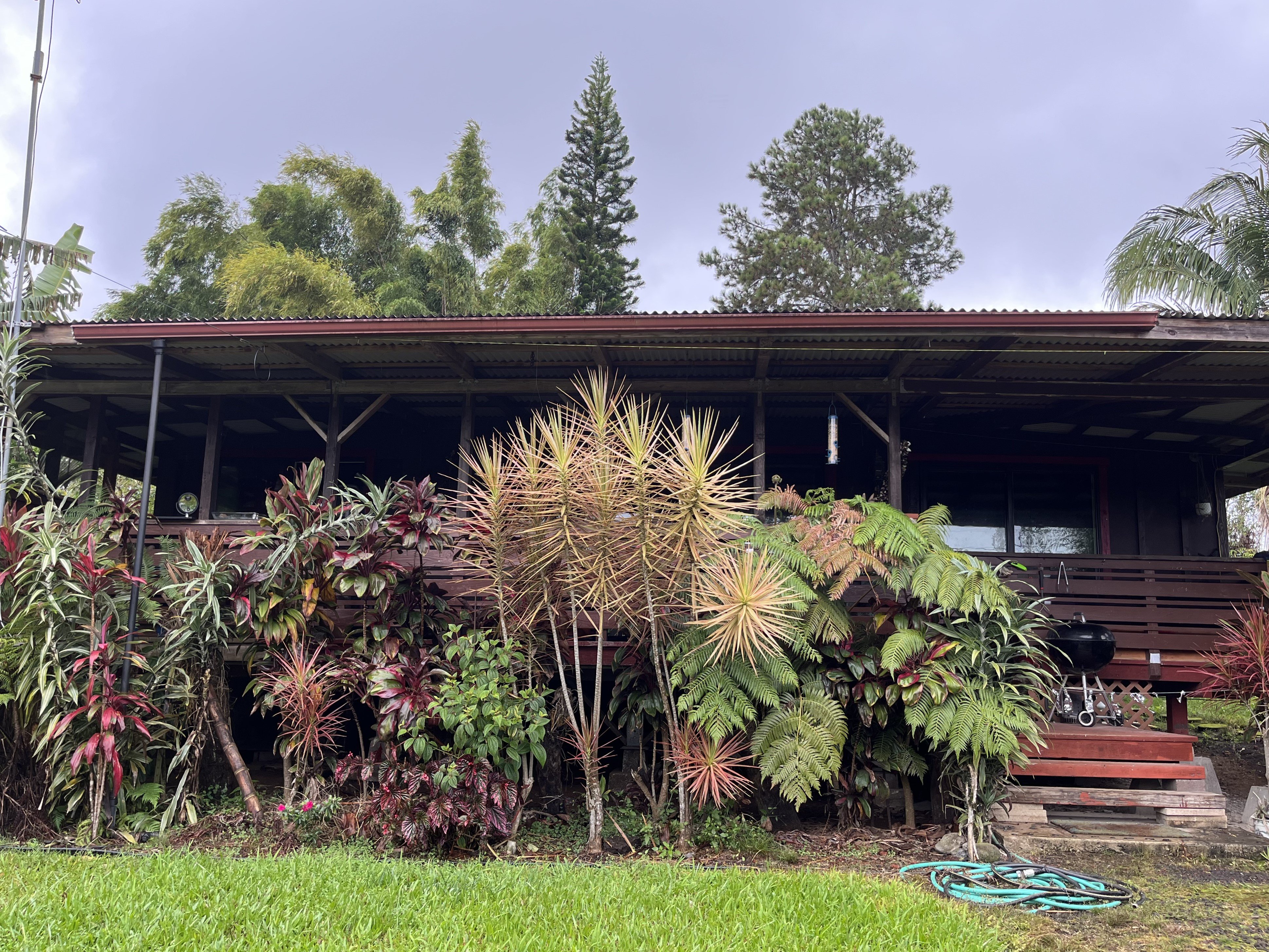 Affordable & Functional 1600 sq ft off grid home plus an over sized covered approx. 10x30 lanai. Dream has been started with mature fruit trees & beauty around. There are also beautiful Palms, Bamboo, Ti Plants, Heliconia, Orchids, Pine, Coleus, & Hapuu Ferns. Located in Aloha Estates with a mandatory $75/yearly road maintenance fee. This beautiful property is located in Mountain View which has cooler evenings and adequate rain and sun to grow a nice garden.