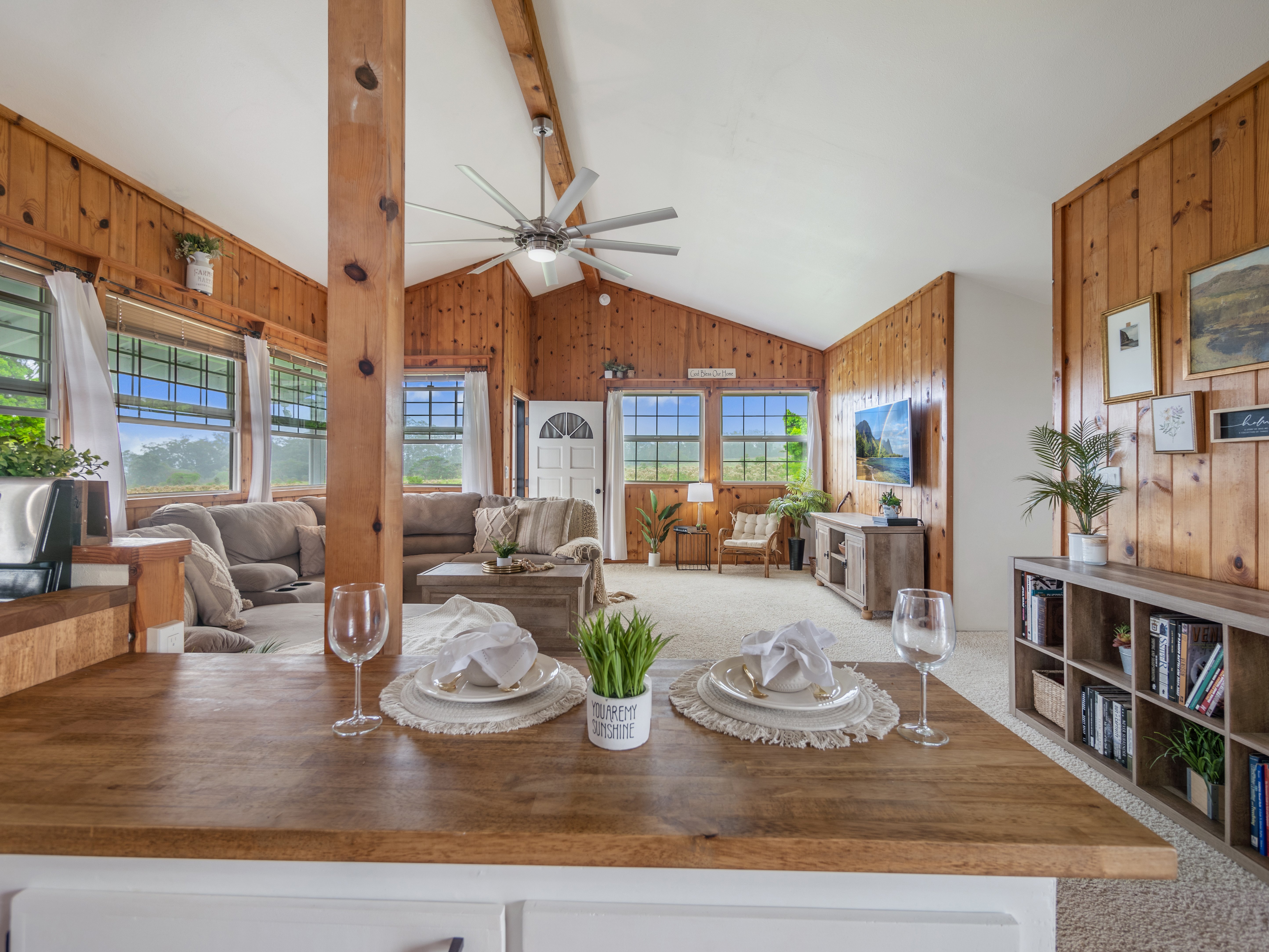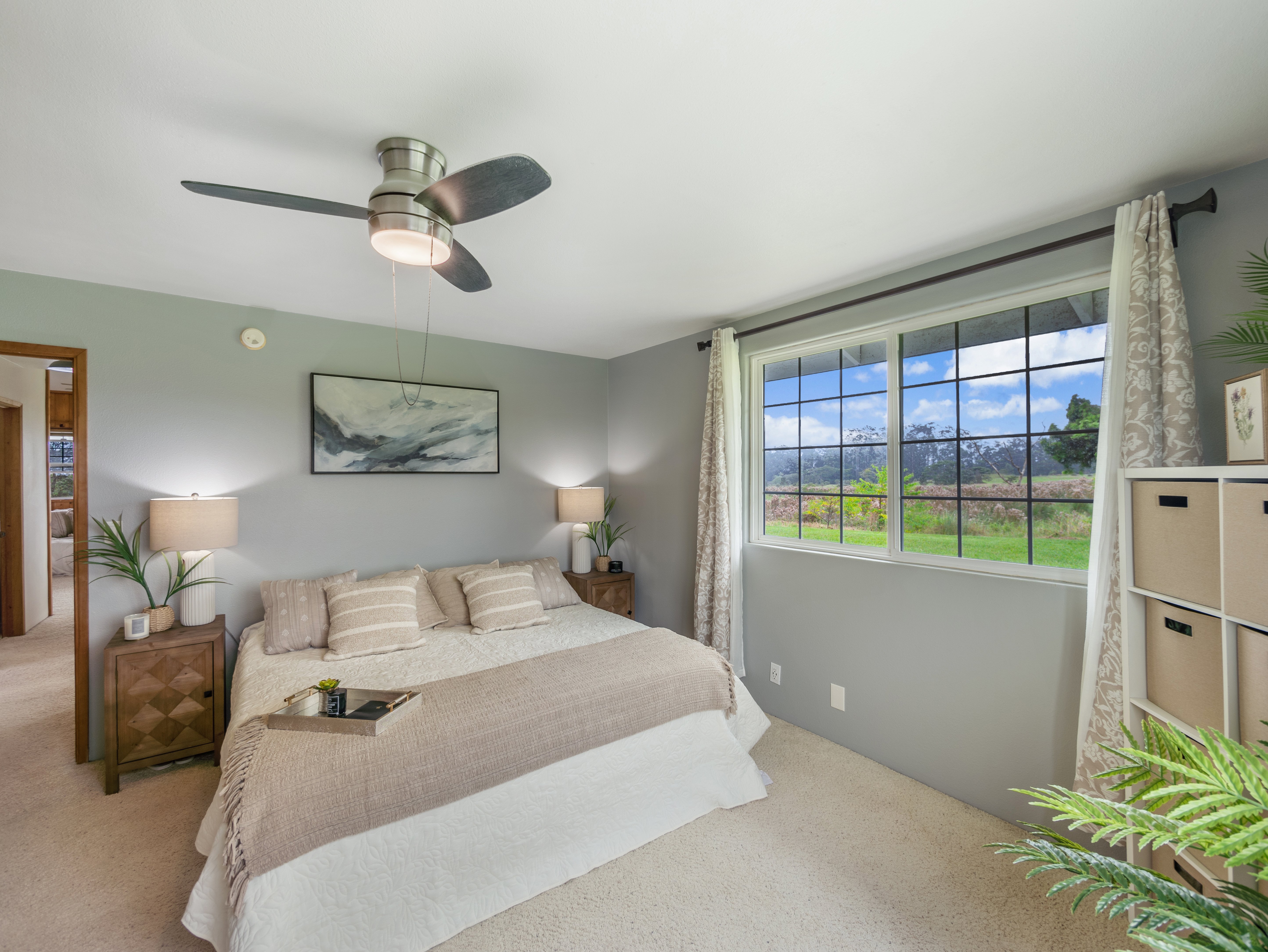 Huge $20,000 Seller Credit at Closing. Your Dream Country Home awaits on 30 Acres that include Mauna Loa & Mauna Kea Views Out Back on Your Massive Dining Lanai & the Pacific Ocean Views out front from Your Farmhouse Covered Porch. Mountain View is a highly sought after community that offers privacy & prime farming for animals and crops. The 2 gated entries, paddocks and beautiful stream make this uniquely valueable! Don't miss your chance to own this Tastefully designed Modern Ranchstyle House that has an Open Concept Floorplan & Vaulted Ceiling Living Room with Gorgeous Wood Work. Country Chic Kitchen is well equipped for entertaining & enjoying. Spacious 3 Bedroom, 2.5 Bathroom has a Primary Bedroom with Pristine Views and a custom En-Suite Bathroom! The 4th Living Option is the Bonus Massive Multipurpose Room that is more like a Private Entry ADU if you add a Wetbar and it already has a front & back door Separate from the Main Living Space making it a great option for Multigenerational Living or Potential Rental Income. PV Solar Panels which are producing about 85%+ of electrical needs, additional City Power & Water, and Paved Road & DSL Internet make this a saavy purcahse. Enjoy shoping & dining nearby where Foodland, Coffee Bean & Tea, True Value Keaau amongst eateries & boutique shops meet your needs and Volcanoes National Park is a must do for your guest! The Lifestyle of Modern Farmhouse Living in Hilo can be yours!
