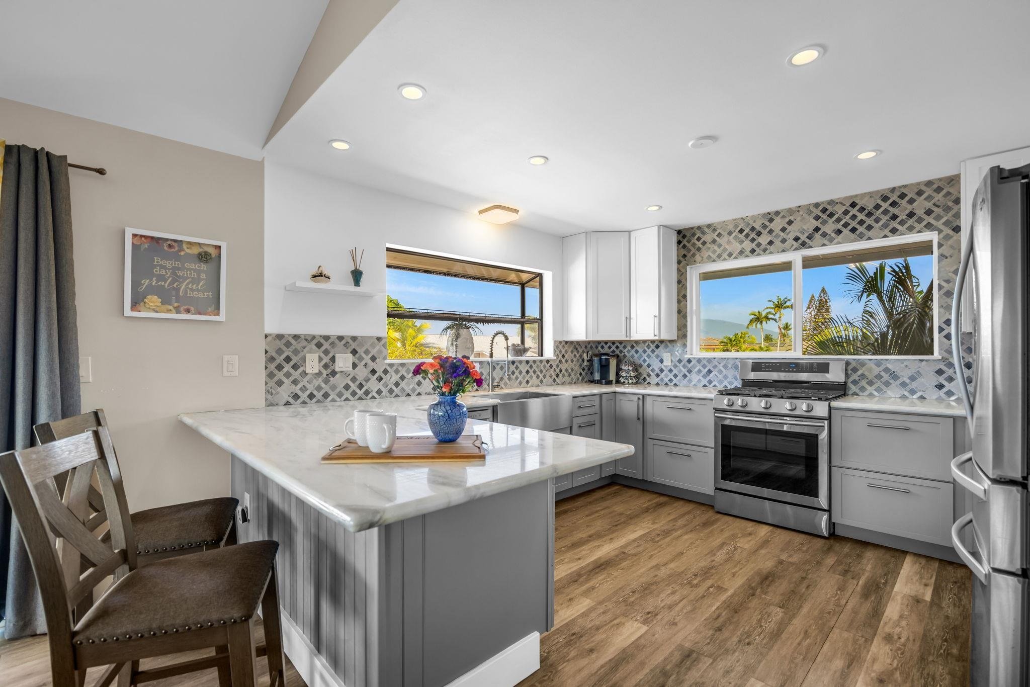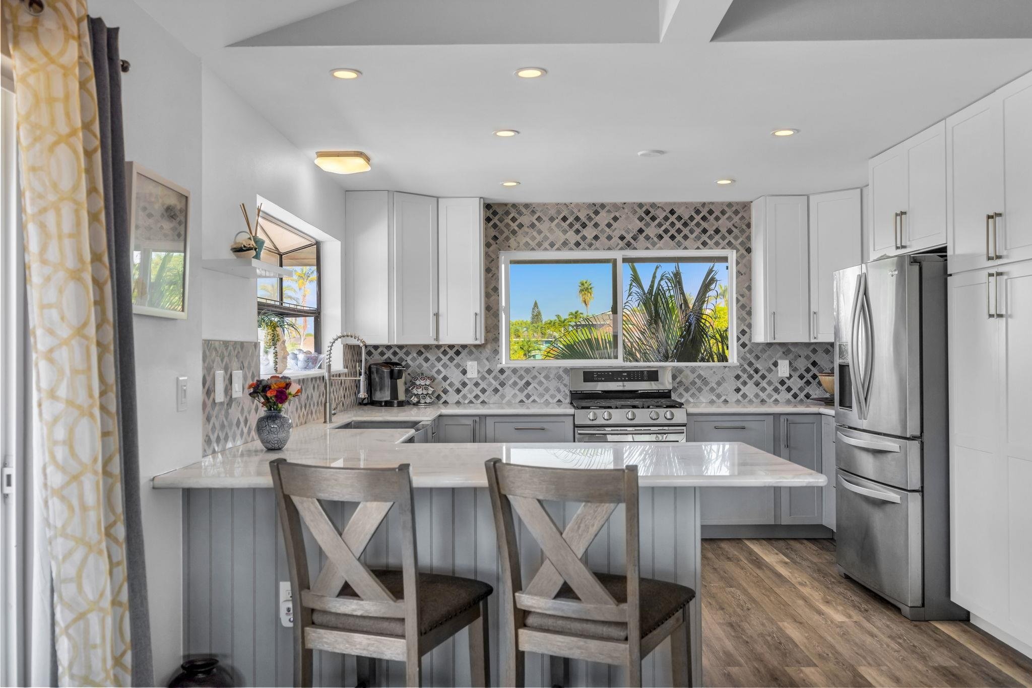 Kihei Oasis with Private Pool and Modern Island Living! Welcome to 194 Kamakoi Loop, a stunning 3-bedroom, 3-bathroom residence with a built in office perfectly situated in the desirable Keonekai Heights Subdivision in sunny South Kihei. This home is the epitome of South Maui living, seamlessly blending comfort, modern upgrades, and a private outdoor paradise. Step inside this Move-In Ready open-concept home featuring vaulted ceilings upstairs with plenty of natural light, offering a bright and airy island ambiance. The kitchen boasts elegant white and grey cabinetry, stainless steel appliances including a spacious apron sink and dishwasher, and a stylish tiled backsplash. Also, a brand new split AC has just installed. Built in 1991 and featuring 1,936 square feet of living area, the two-story home includes three full bathrooms, making it ideal for families or guests. The fully equipped backyard is your personal resort, featuring a beautifully shaped pool and a jacuzzi providing the perfect setting to unwind and enjoy the year-round sunshine. The pool area also includes plenty of patio space for grilling and dining outdoors. Experience the best of Kihei in a well-maintained home designed for a comfortable and relaxed island lifestyle.