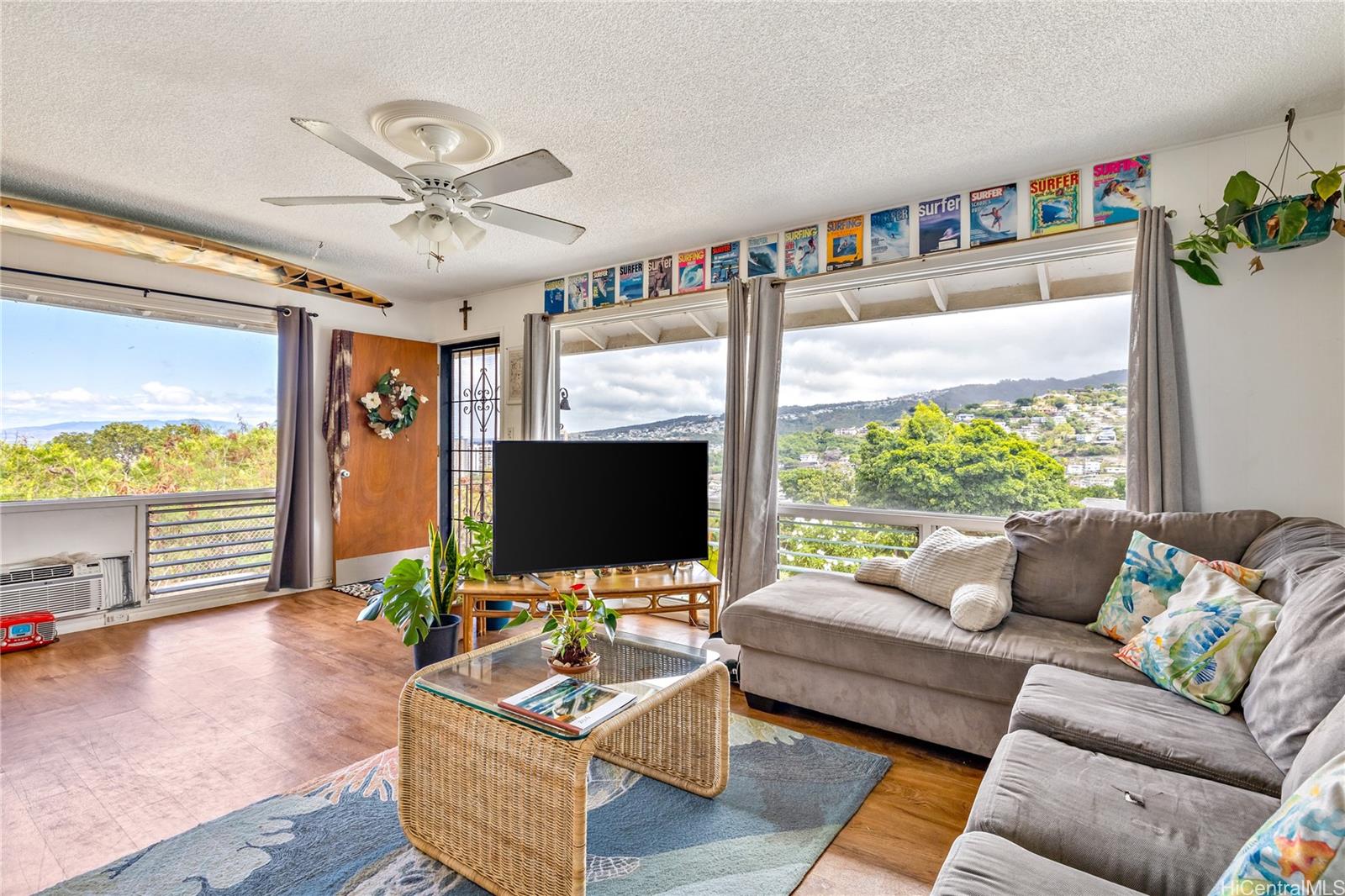 Location, location, location, and city views is what this home is all about! Off the beaten track and a stone's throw to downtown, this home is ready for your green thumb and designer eye. Tenants love this location and while they would love to stay, they are on a month-to-month lease. If you are ready to live in "town", enjoy expansive City/Mauka views and a generous yard for gardening, this house is for you! Large lot may afford you an ADU (pls check w/ your favorite contractor and Dept of Planning and Permitting) and may be fenced for your four legged bestie. 4 bedrooms, 2 bathroom upstairs and 1 bedroom, 1 bathroom downstairs with a separate entrance. Driveway and carport offer extra parking for all. Stainless steel kitchen appliances and a new water heater round off the appliance package, w/the washer/dryer conveniently located outside the kitchen back door. First offering in 25 years and here's to owning this home for another 25+ years! Don't hesitate, contact me today! First showings on Saturday 4/30/2022 and Sunday 5/1/2022.