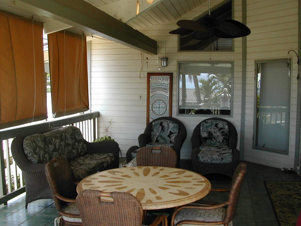 Amazing views at sunset, sunrise, ocean Halakala and so much more. This 4 bedroom 2 bath home has so many upgrades and remodeling. Amenities include varnished natural wood-frame dual pane Migard windows and sliders with remote control Sunshades. Kitchen has stainless appliances, granite counters , custom cabinets with deep self-closing drawers, pull out shelves . Bamboo floors thru out the kitchen, dining and family room. Master bath has brazilian countertop, cherry and koa wood cabinetry giant glass clamshell sink. large walk in shower with Rain showerhead walled with opulent translucent mosaic tile and stone tile floor. Custom Hawaiian tile floors. Master Bedroom is upstairs .3 bedrooms are downstairs one bedroom is an office. Open beam and knotty pine 16 foot high catheral ceiling with six solar panel ceiling fans . Metrile metal roof with radiant barrier insulation and reinforced trusses. Futijsu 3 zone split system ductless air conditioning system with remote controls. invisible screen for sliders and doors. 600 sq.ft of lanai over 330 covered. Lava rock wall frames front yard and fenced backyard for children and pets Home has several fruit trees and other tropical plants. Home has a three car garage.. Beautifully furnished home in Hawaiian South Pacific decor. one bedroom and one bath ohana built in 2009. private entry and furnished. Seller is licensed Hawaii Realtor. Lister Owned
