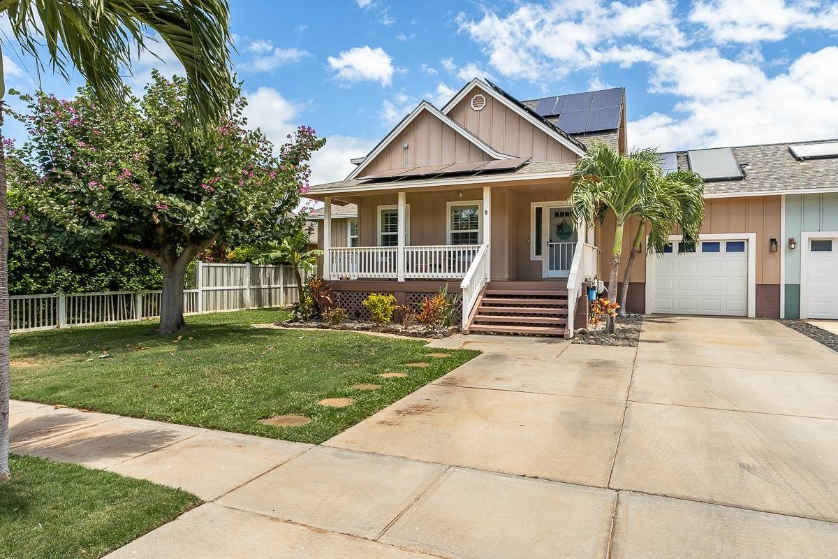 Welcome to this beautifully renovated 3-bedroom, 3.5-bath home offering 1,560 sq. ft. of stylish, energy-efficient living in a highly desirable neighborhood. Plus a versatile room perfect for an Ohana or office, maybe an extra bedroom. Updated kitchen, bedrooms, bathrooms and living area. New appliances along with all new switches and plugs. Equipped with 24 owned solar panels with 2 Tesla batteries for energy savings and backup power. The master bedroom is on the main floor with ensuite bathroom and soaking tub. Two bedrooms upstairs, one with a private lanai and both offering a Mountain View! Beautifully landscaped yard and meticulously designed outdoor space featuring lush greenery and serene pathways creating a tranquil environment to relax and entertain. This is your opportunity to own a turnkey home in a quiet friendly area with easy access to shopping, dinning and all outdoor activities! Contact your favorite realtor for a showing.