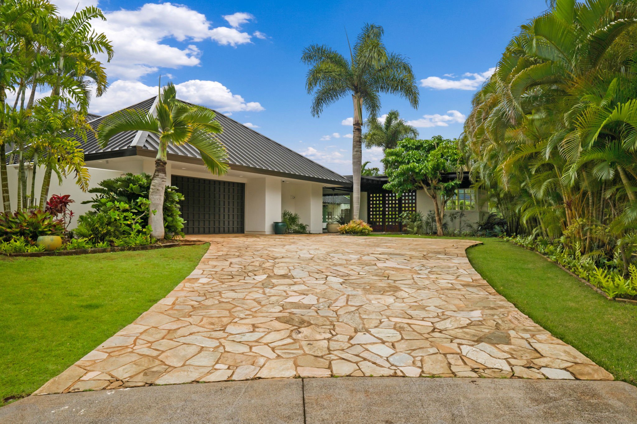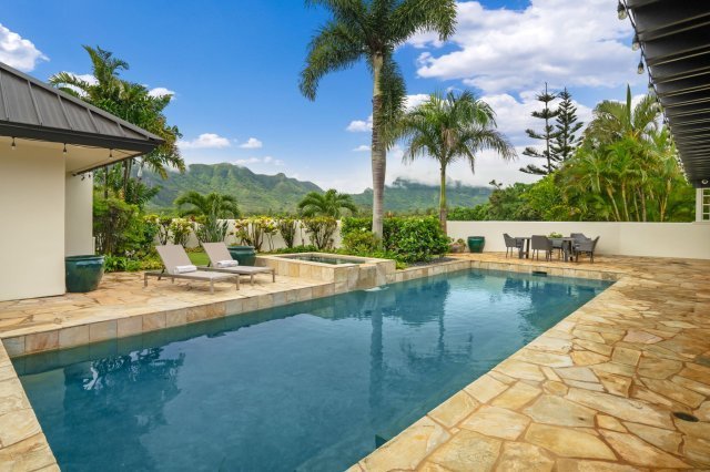 An exceptional trophy property, located on the 18th hole of the Puakea Golf Course, is a home like no other anywhere on Kaua’i. The awe-inspiring panoramic views of the Haupu Mountain Range (also known as the “Hidden Gem of Kaua’i”) are stunning. Home is designed for absolutely the best of indoor/outdoor island living in an extremely private setting. Designed by well-known Gary Tobey, this is the most distinguished luxury home on the Puakea Course. Perfectly situated on the largest and most secluded parcel in Puako, the residence is sited to take advantage of the views of mountains and golf course. Quartzite flagstone carries throughout. From the driveway to the elegant entry, the pool hardscape, and the complete living areas give this home the rich character to enhance any décor and indoor-outdoor Kaua’i style living and aesthetic. Built by J M Pacific, the home was constructed without bearing walls to support the unique roof structure; many of the more significant walls were engineered with steel framing. Extensive use of glass windows, doors, and walls creates expansive openness in every direction. Owners will not only appreciate but cherish the artistic attention to detail for generations – it is timeless with several hundred thousand dollars having been invested in new glass folding door systems, two new 5-ton Lennox variable speed high-efficiency air conditioning systems with air purification and Mylar air distribution system, two new Daiken mini split units, new insulation in the entire attic, new pool heater, new variable pool pump, new Pentair pool control system. New Savant audio video system, new televisions and speakers. The kitchen and bathrooms have new quartz countertops. New exterior paint. Hydrazzo polished pool finish, spa An amazing property that must be experienced to fully appreciate resort style living.
