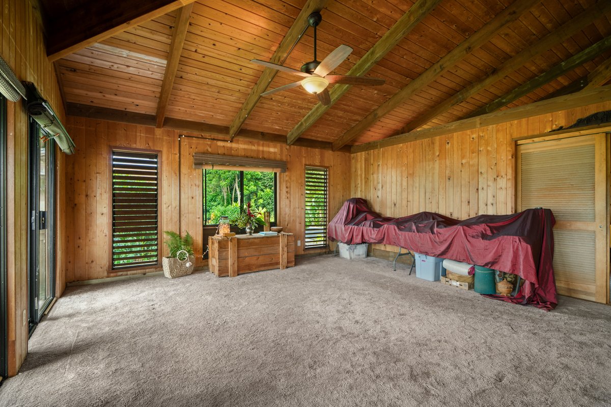 You can check out the floor plan on the Addendums. As the lowest priced home currently available on Kaua‘i’s North Shore, this 3BR/3BA residence in Kīlauea’s Puu Lani subdivision offers an exceptional combination of space, flexibility and value. Built in 1989 and with approx. 2,760 sq ft of interior living area on an 8,976 sq ft oversized lot, 2328 Oka St provides room to live, work and generate income.The upper level features two oversized en-suite bedrooms, a generous kitchen, and a bright, open living/dining area framed by a striking vaulted Douglas fir ceiling. Large windows and sliding doors draw in natural light and cooling trade winds, while the covered lanai extends your living space outdoors for everyday enjoyment and entertaining.Downstairs, a finished 1BR/1BA space with its own living area and private lanai overlooks the garden and is currently used as a separate rental. Interior and exterior access points offer multiple options: live upstairs and rent the lower level, create a multigenerational setup, or easily reconnect the home as a single spacious 3BR/3BA residence.In addition to the interior square footage, County records reflect approx. 400 sq ft of garage space and nearly 390 sq ft of combined porch and deck area, providing ample room for storage, projects and outdoor living. Total combined space is @ 3548 sq feet!The fenced yard includes plenty of room for gardening, play and pets, with mature tropical plantings and space to add your personal touches. Conveniently located just minutes from Kīlauea town’s shops, eateries, services and school, and a short drive to world-class beaches and Hanalei Bay, this is a rare chance to secure a solidly built, move-in ready home with built-in versatility on Kaua‘i’s North Shore.