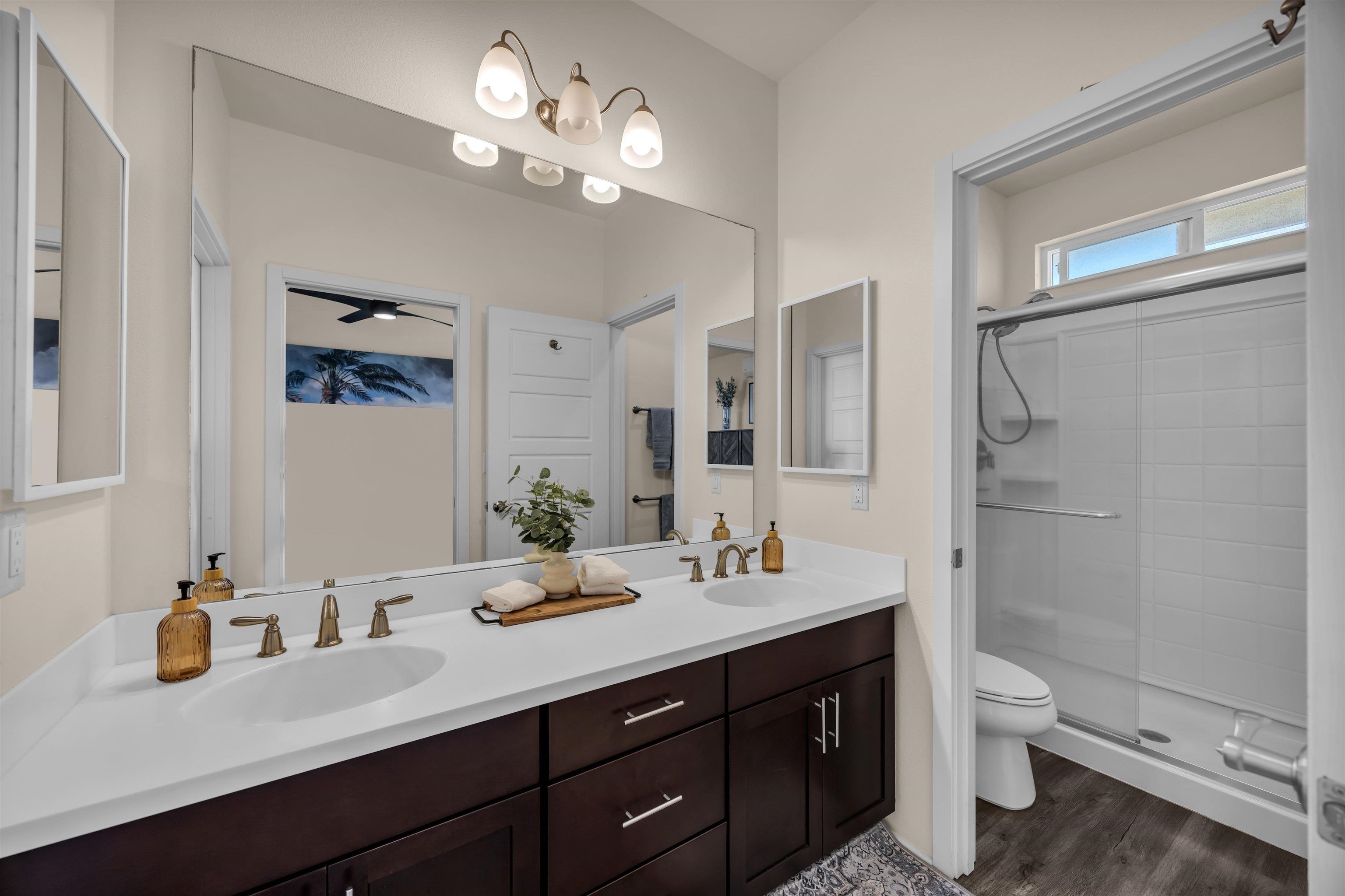 Welcome to 235 Kilioopu Street, a stunning 3-bedroom, 2-bathroom single-level home nestled in the highly sought-after Highlands at Kehalani community in Wailuku. Built in 2019 and meticulously maintained, this residence offers 1,542 Sq ft of modern interior space on a beautifully landscaped 5,672 Sq ft lot—perfectly oriented to capture sweeping North Shore ocean views and cool mountain breezes. Step inside to discover an open-concept floor plan filled with natural light and tasteful upgrades throughout. The kitchen features all-new stainless-steel appliances, sleek cabinetry, and ample counter space—ideal for everyday living and entertaining. Each bedroom is equipped with its own split-system air conditioning unit for customized comfort. The spacious primary suite includes a walk-in closet and en suite bathroom. Outside, lush tropical landscaping surrounds the home, offering both beauty and privacy. A covered lanai provides the perfect setting to enjoy morning coffee with a view or relax at sunset. Located in one of Central Maui’s most desirable master-planned communities, residents of Highlands at Kehalani enjoy access to pedestrian paths, parks, and close proximity to schools.