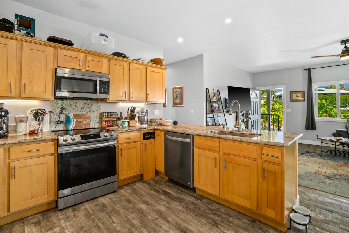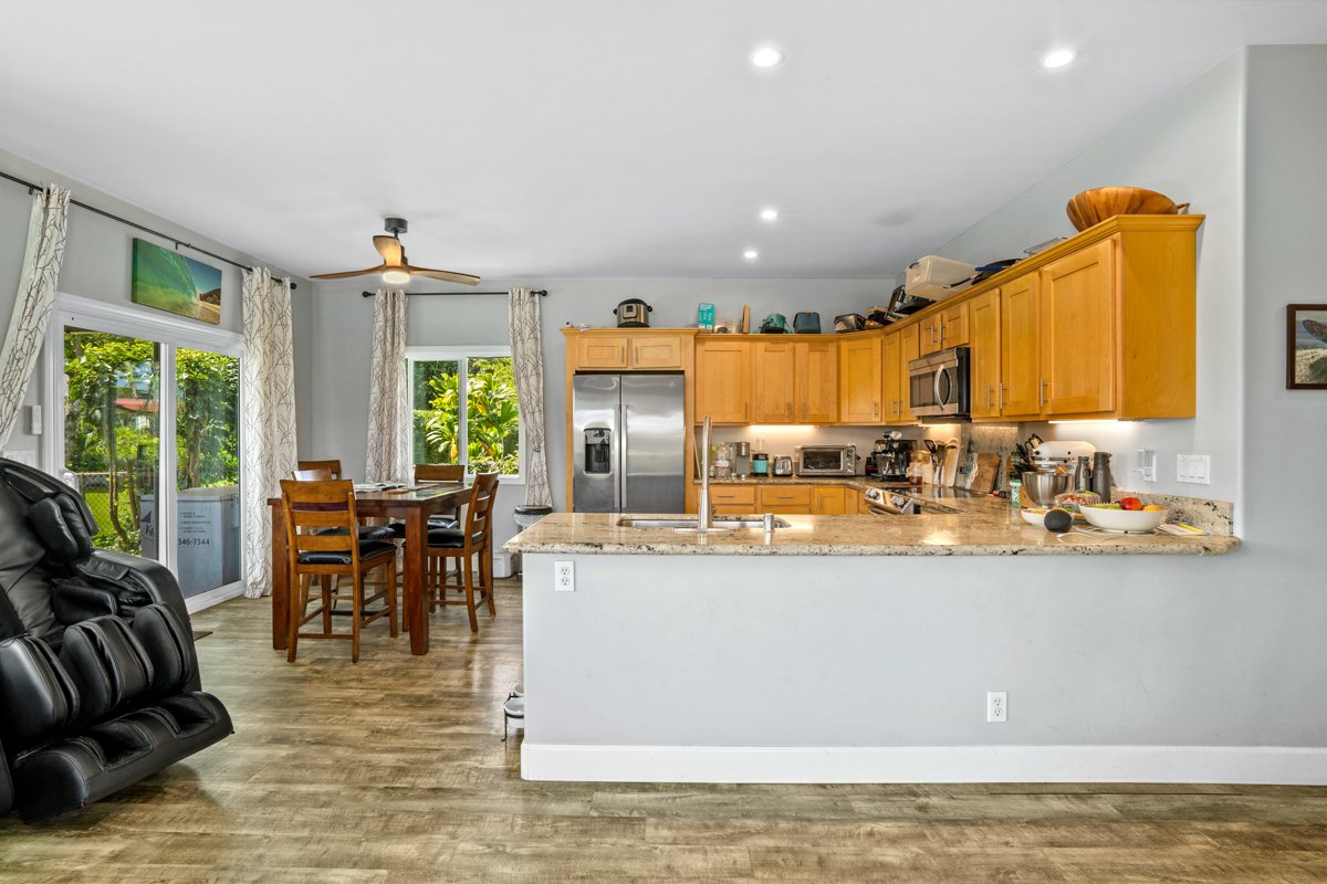 Seller Motivated! Single family or multigenerational home in Kilauea town. Walk to market, restaurant, Kilauea Elementary School. Quiet neighborhood, Solar hot water heater, Sun Run PV system, 2 car garage. Beautiful volcanic rock wall. Buyer to corporate with 1031 exchange