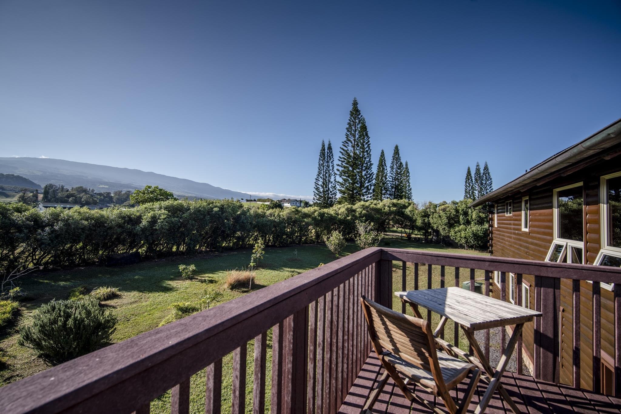 This unique 2,784 sq. ft. western red cedar log home in Haiku, Maui, offers unparalleled elegance and breathtaking 360-degree views of the North Shore Ocean, West Maui Mountains, and Haleakala Crater. This 3-bedroom, 3-bath residence sits on a pristine complete 2-acre manicured lot located in a quiet secluded cul-de-sac - it is all ready for a CPR by a new owner. The primary suite is upstairs on the main floor, and it is adjacent to the main living room, dining room and huge kitchen. You enter via the custom-built staircase, greeted by very high cathedral ceilings, wood-burning fireplaces on both floors, and several hand-crafted stained-glass windows. The downstairs level has a separate bedroom suite with its own bathroom, a third bedroom or study, and another living room area and a shared third bathroom! The interior features Alaskan yellow cedar floors, natural slate flooring, and an abundance of oversized double-pane windows that provide plenty of natural light. The gourmet kitchen boasts granite counters, a large island with a built-in Dacor range, maple cabinetry, and a 48" Kitchen Aid refrigerator. Other amenities include a dumbwaiter from the garage to the kitchen, central vacuum, solar water heater, and Kohler bath fixtures. The bathrooms are adorned with soft-toned Saltillo tiles, floor-to-ceiling tumbled-marble walls, and granite and marble counters. An all-wood spiral staircase serves as both an engineering feat and a work of art. Outside, copper gutters and a 700 sq. ft. oversized garage complete the property. The lot is all useable and the gardens feature an arboretum of native Hawaiian plant species fenced in its own pasture area, and a host of other fruit trees including: avocado, citrus and surinam cherries, along with star fruit, mango, loquat, acerola and white sapote. Call your favorite Realtor today to book a private showing!