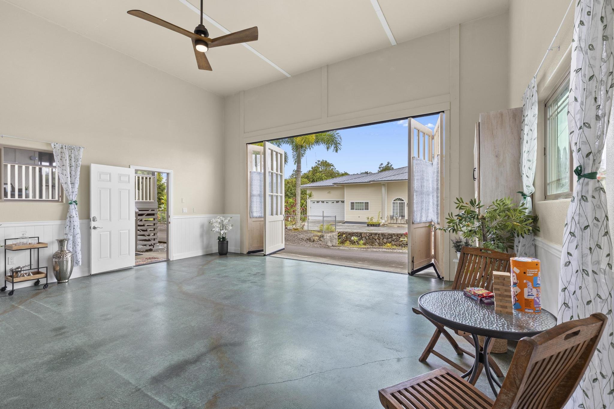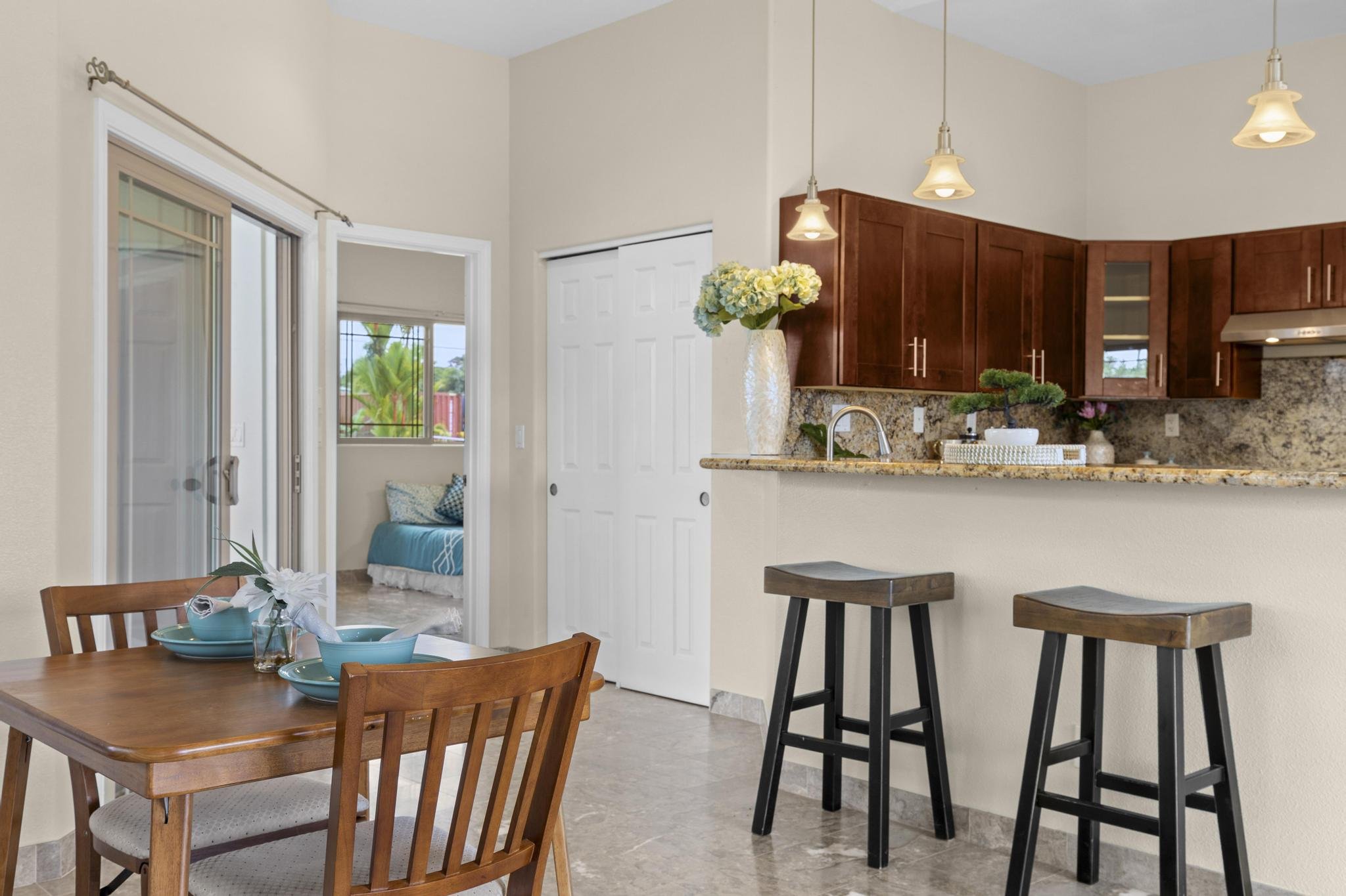 This home shows pride of ownership and has been very well-maintained! Thoughtfully designed with entertaining in mind! A very large enclosed garage that has custom carriage doors that can be opened and the space can be used as a garage. However, it is a multi-purpose space with a wet bar, full bathroom and loft area! This is an ideal recreation room and party area! There is also a Murphy Bed for occasional guests!Other amenities include:*Gorgeous real MARBLE Floors throughout! *Vaulted Ceilings in the Open Concept Great Room for the Living, Dining and Kitchen! *Hardwood cabinets and Solid granite countertops in the Kitchen and all bathrooms. *Newer Stainless Steel Appliances in the kitchen including the dishwasher, stove and refrig! *Indoor Butler's Pantry with wet bar and wine cooler. *Remote controlled Ceiling fans in every room. *Giant covered and screened-in-Lanai serves as an outdoor living room with sliding glass doors to living area and primary bedroom. *Primary bedroom is huge! It has a walk-in closet and private bathroom with jetted tub and shower. *Popular split-design separating the primary bedroom suite from the other two good sized bedrooms and full guest bathroom on other side of kitchen. * Fully owned SOLAR ELECTRIC SYSTEM on full-credit-Net-Metering-Program for very low power bills! *Washer and Dryer in screened area of the large lanai. *Paved asphalt and concrete driveway. * Two garden sheds. * Quality double-pane Low-e windows. *Two Trex Garden Decks, perfect for outdoor entertaining. * Post and Pier construction of main house catches ocean breezes! * Extremely LOW interest rate assumable VA loan at 2.5% loan for qualified VA buyer! * Lovely landscaping with grass lawn and palms and fruit trees. * Located in an area of new quality constructed homes and house is set far from road for privacy.