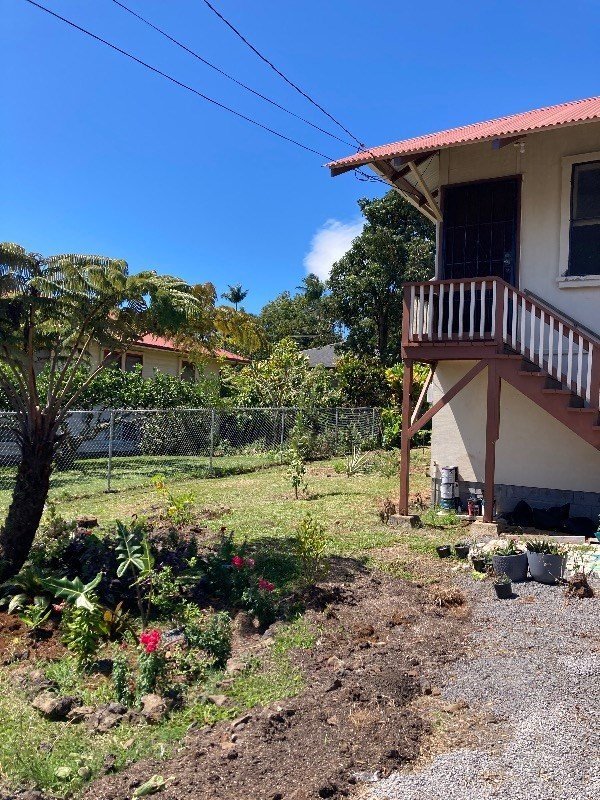 ONLY FOUR MILES FROM HILO - ON THE HAMAKUA COASTLINE.Property is located only one road off main Highway.Owner was transferred to another Island, so this is the reason for selling this special home. All Offers will be considered.Three bedrooms upstairs, as well as additional living area with a full bathroom downstairs. The property features a fully fenced, private yard with a new chain-link fence, that has Fabric Mesh Netting on three sides.Drive right in on the circular graveled driveway: (easy and convenient access in and out of the property).Many upgrades were completed to the home and the yard, including the re-painting of the downstairs area.The house has a COVERED GARAGE AND there is a carport too!The Seller removed overgrown African Tulip trees which at one time blocked the ocean view. Now you can see and enjoy the incredible views. The yard now has many flowering plants, and several fruit trees, including lemon, lime, Papaya and orange trees. There is also a sweet and special garden area, with growing herbs, and pineapples too!The home welcomes you into the large living room and cozy kitchen, that has an upright washer and dryer As soon as you enter, you will see the hardwood floors throughout, which adds to the charm of this home.Incredible Ocean views from the home and Mauna Kea views from the kitchen, and two bedrooms.Spectrum cable is available here.NOTE*** Property Taxes: $72.72 per month. Insurance: $104.42 Per Month.Additional Electrical outlets installed in 2022. House was tented by Hilo Termite, in August 2022. Termite Certificate to be provided to the Buyer. The large double doors /stainless steel refrigerator is less than a year old and is included with the sale.Seller will not survey or re-stake the Property. Fence was constructed to be inside of the property line