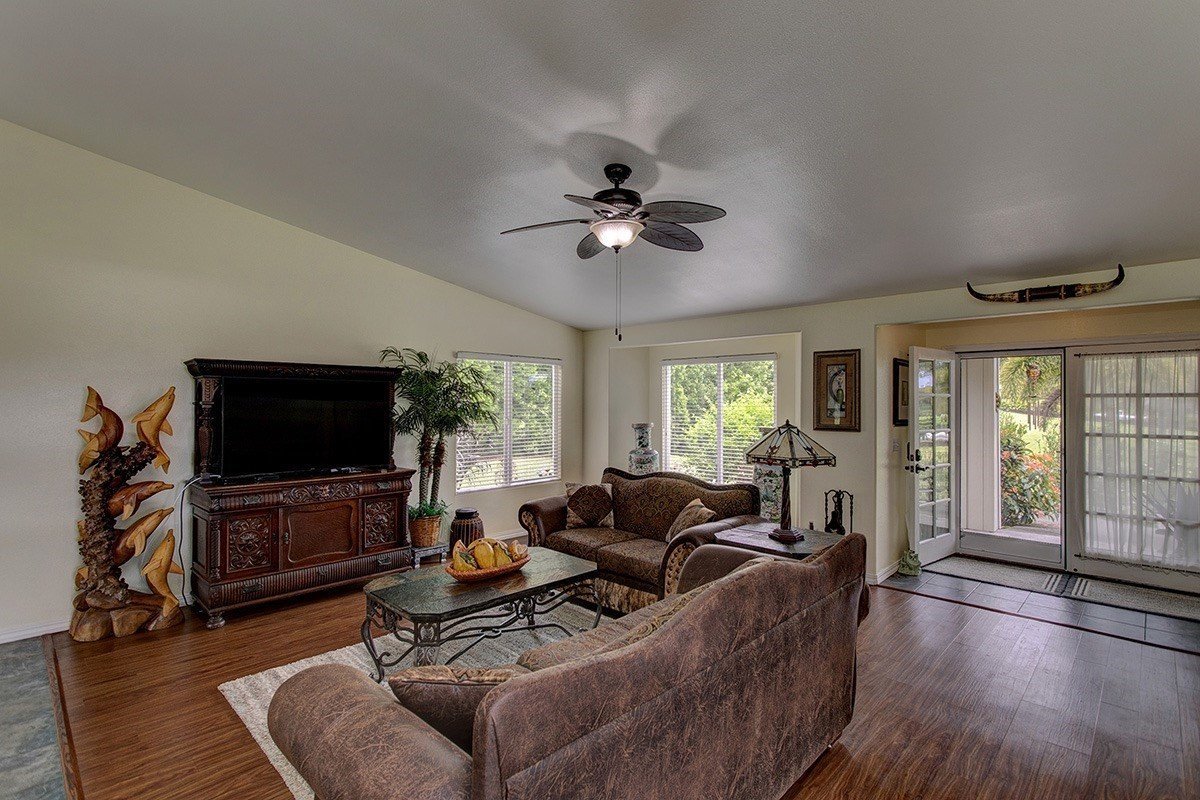 Stunning Country Home on 5 acres. Minutes from Downtown Hilo, located in scenic Onomea, Hawaii. From the moment you turn onto the palm lined driveway, this spacious contemporary style home built in 2004, sits high, overlooking the well manicured lawn and fruit trees, with views of the Pacific Ocean.Onomea Bay subdivision is one of the most sought after large parcel subdivisions in north Hilo. Only minutes from Downtown Hilo, the airport, harbor and shopping, but with the quiet and space of the country.The home is an open concept, 2,202 sqft of living area with a well appointed kitchen looking into the living room. A separate Family room off of the kitchen provides an area for larger gatherings or a nice area to read that overlooks the grounds.Bedroom 2 & 3 share a jack and jill styled bathroom and are located just off of the kitchen hallway. The master suite with tub, shower, walk-in closet and a private lanai (240 sqft) with the views of the ocean.The home also includes a 3 car garage (720 sqft) and a first floor lanai (480 sqft). The catchment tank is 10,000 gallons and net metered solar power.There are very few properties like this home on the market and fewer yet in Onomea.24 solar panels. Owner says they never paid more than $27 for electric. Catchment tank has water filtration system with UV light. High speed internet through Spectrum.Various plants and fruit trees including - Ota Avocado, San Miguel Avocado, Meyer Lemon, Tahitian Lime, Washington Orange, Lane Late Orange, Yamagata Avocado, White Pineapple, Lychee, tangerine and coconut.