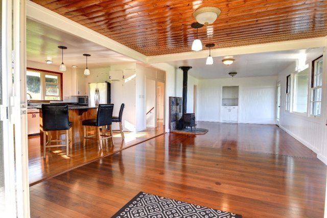 Nestled within the slopes of Mauna Kea along the highly preferred Hamakua Coast of the Big Island of Hawaii, and at an elevation of approximately 1,000 feet, this lovely 2-story, renovated plantation style house with ocean views experiences the cool breezes of the ocean trade winds during the day, and the downward mauna winds during the evening. Enjoy the outer country setting of Papaikou, and the convenience of being 15 minutes from historic Old Downtown Hilo The property is in a quiet, safe, neighborhood; includes an electric gate for added security and privacy.The main living area is located on the upper level of the house where you’ll find three bedrooms, one bath with walk-in shower; as you enter the front door, you are welcomed with large windows in the living room and an open concept design which includes the kitchen, dining, living areas, along with an adjacent deck overlooking a beautifully landscaped yard of ornamental plants and flowers, and an orchard of a variety of forty-plus mature fruit trees. The house receives the morning sunrise over the ocean’s horizon, and the orientation of the house and windows provide a comfortable flow of air through the house. There is a wood burning stove to provide a warm ambience during the cool winter nights.Downstairs offers separate living quarters outfitted with one bedroom, one bathroom with a large walk-in shower, a kitchenette and private entrance. Careful maintenance and the due diligence of the seller has kept this 1950's home in tip top shape.Please allow overnight notice for showing requests. Buyers and Sellers agent must be present for all showings.
