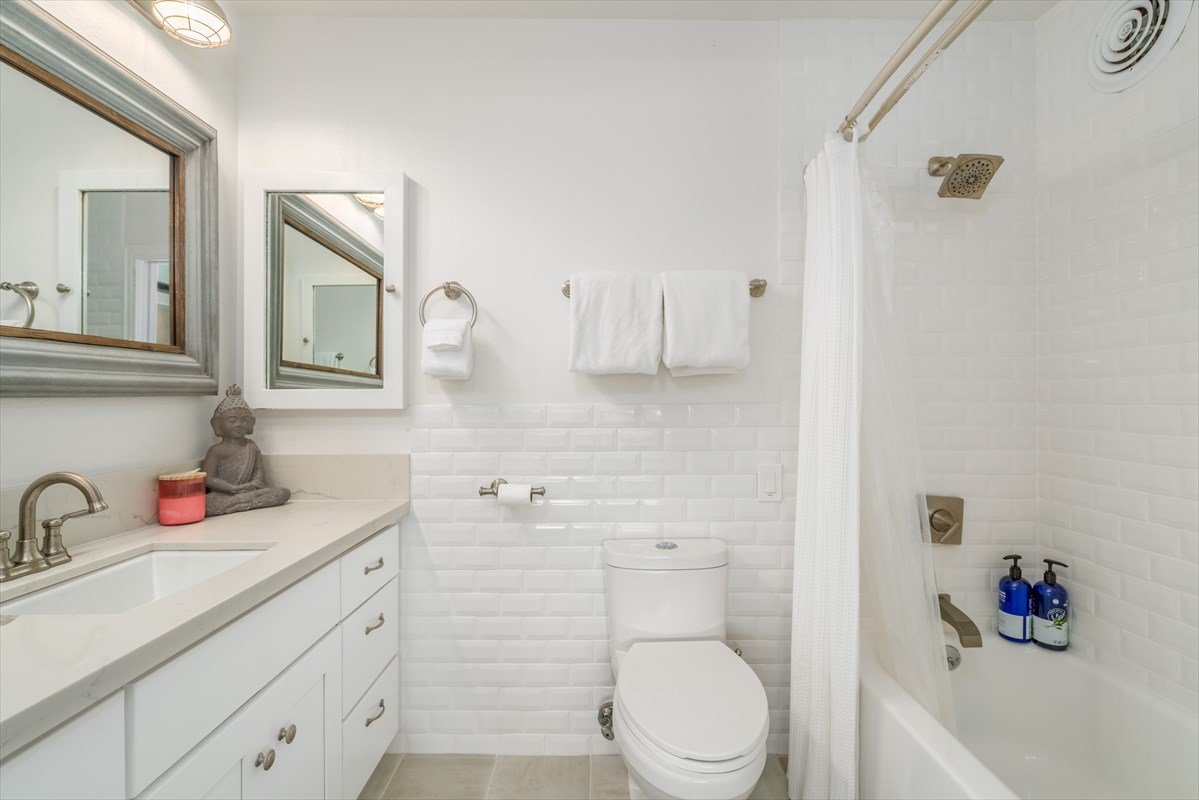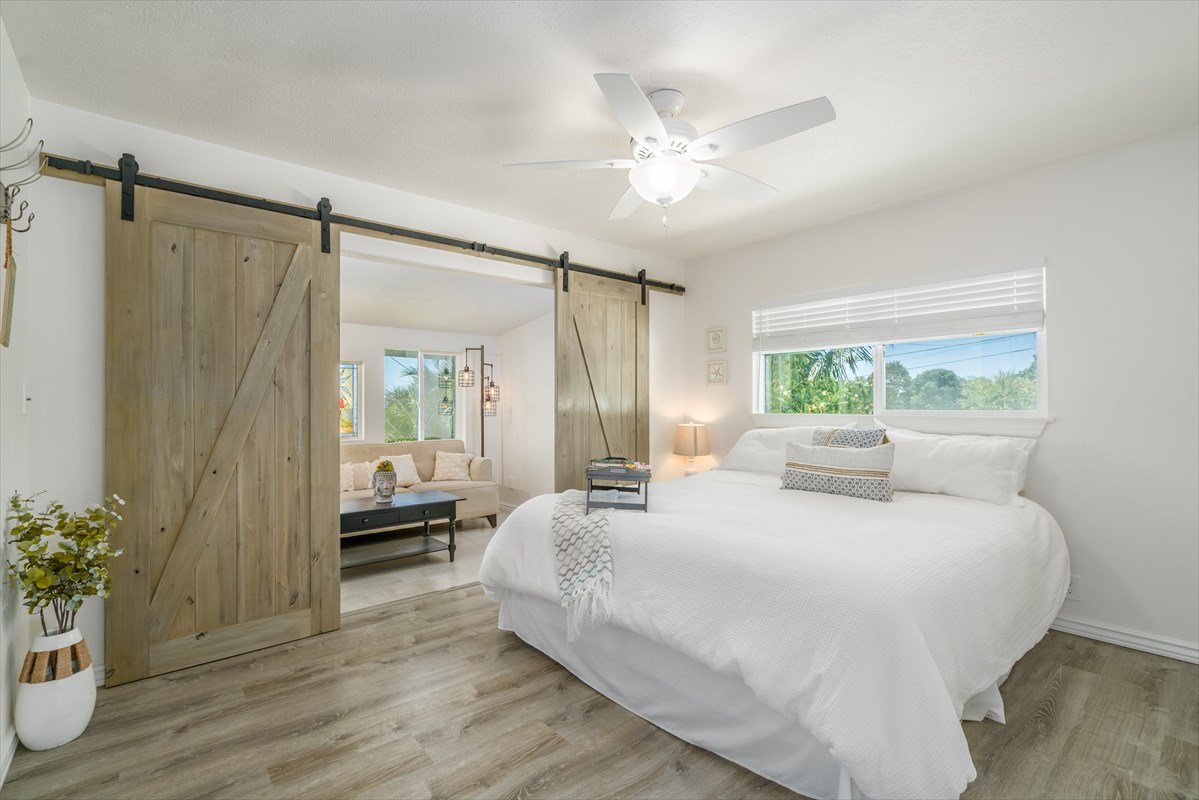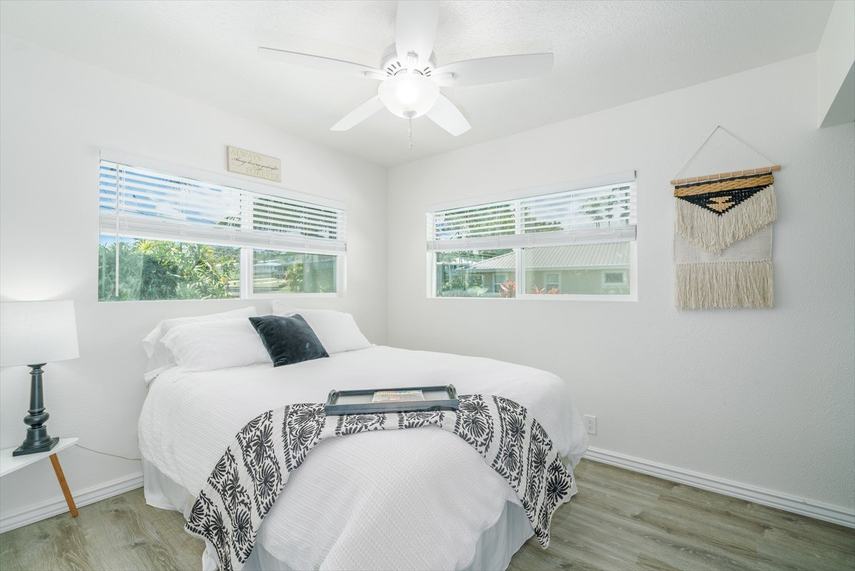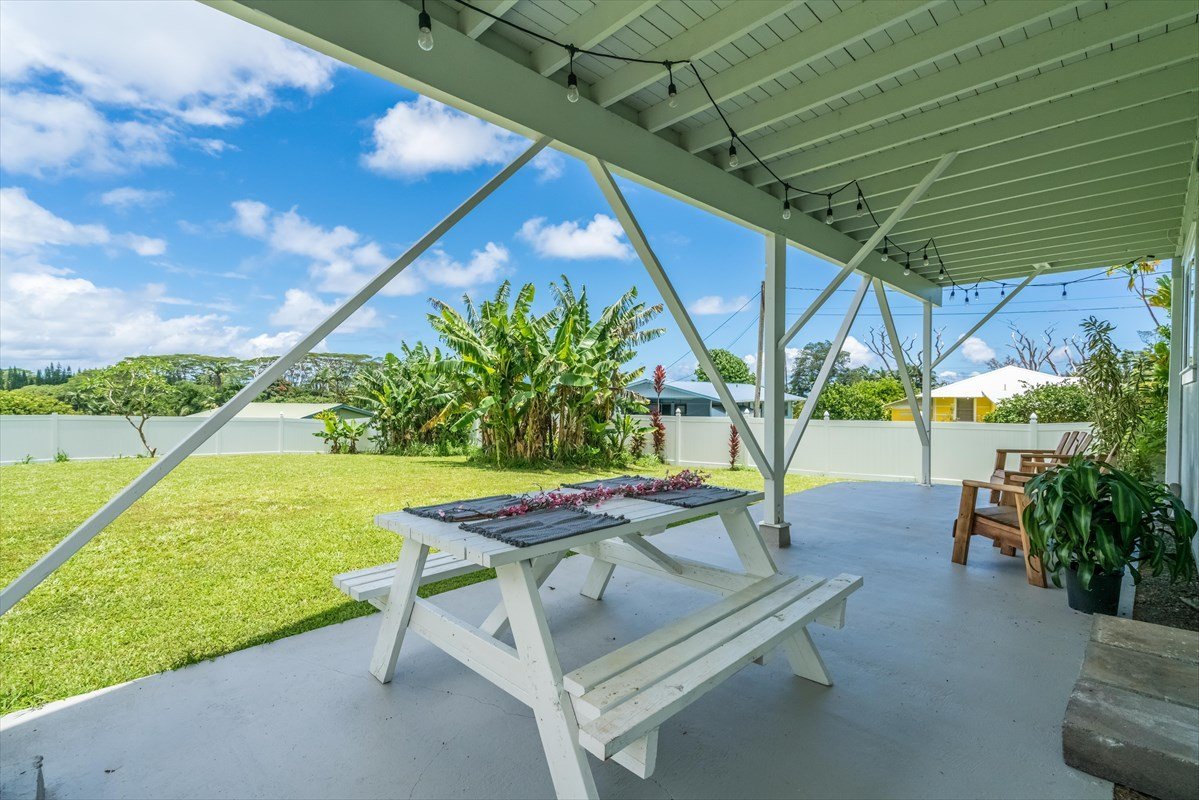 Large modern farmhouse in Honomu with ocean views and tasteful renovations. Completely remodeled in 2018, everything was rebuilt with high-quality materials and furnishings. Designed by a team of professional interior designers, this STVR PERMITTED profitable vacation rental is a MUST SEE! ALL furniture and appliances are included, TURN KEY!Featuring~ -Total of 3768 sq. ft. under roof! On large parcel that can be subdivided or have a guest home built. -5 bedroom/ 3 bathroom, 2 masters “bedrooms”, sunroom, 1 kitchen, 1 kitchenette, large indoor laundry room, lots of closet storage! -Brand new custom white cabinets, modern off white honeycomb backsplash, off white grey vein quartz countertops, double wide kitchen sink, brand new top of the line appliances. -Gorgeous cool-white ship lap textured walls in the kitchen/entertainment room create a beachy farmhouse vibe. -High quality "LifeProof” grey-toned wood plank laminate throughout the entire house. -Custom tile work in all 3 bathrooms, off white Subway tile in master bath, pebble stoned showers. -Giant ceiling mounted shower head creates a waterfall effect in the master shower! -Sunroom with vintage stained glass window, ocean view, and custom stained indoor barn doors. -Large windows and extra-wide sliding glass doors upstairs offer a view from every seat in the room. -Large wrap-around ocean view deck offers plenty of space for lounge furniture, outdoor dining table, a reading nook, or crafts. -Private entrances to both master bedrooms and multiple doors in the house offer the ability to split the house into separate “units”. -Mature and valuable Hawaiian landscaping, ponytail palm, grand palms, coconuts, citrus, coffee, bananas, etc. -Well-maintained lawn (great for yoga, relaxation, hosting barbecues, kids, etc) -Outdoor Cedar gazebo w/ handmade pebble stone walkway and concrete pad perfect spot for a large outdoor dining table or hot tub.