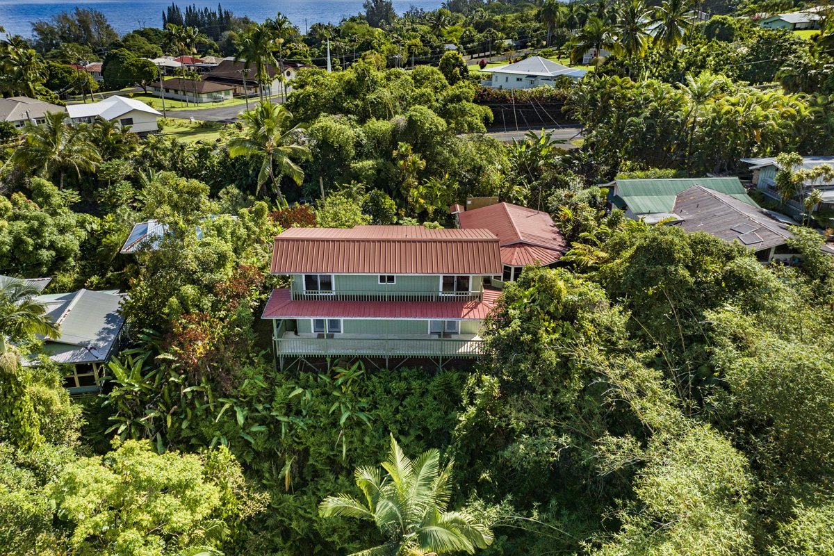 Step into your private oasis as the soothing sounds of the Pahe'ehe'e Stream & the mature tropical foliage provide that sense of nature’s embrace! Conveniently located less than a quarter mile from Highway 19, & at the lower end of the quaint town of Honomu on the spectacular Hamakua Coast, this tree-top property includes a 2-story, well maintained home with 4 ample bedrooms & 2 bathrooms, soaring vaulted ceilings, expansive windows, beautiful hardwood floors, & two covered lanais with amazing views of Mauna Kea, the surrounding forest & annual stream below.