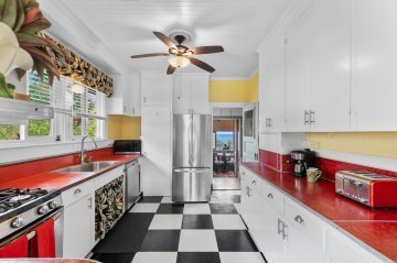 The well upgraded kitchen includes beautiful live-edge hardwood counter tops, cook island, stainless steel appliances, open dining area, large windows & French doors which provide access to the first level covered lanai. This level features 2 bedrooms: one with a loft, & one which is perfect for an office, and full bathroom. Travel upstairs to discover two additional bedrooms and one full bathroom, along with a second covered lanai which extends the entire length of the home. Keep the windows open to enjoy the year-round serenade of the flowing stream below, natures aviary, as well as the rustle of the leaves in response to the Hawaiian trade winds.