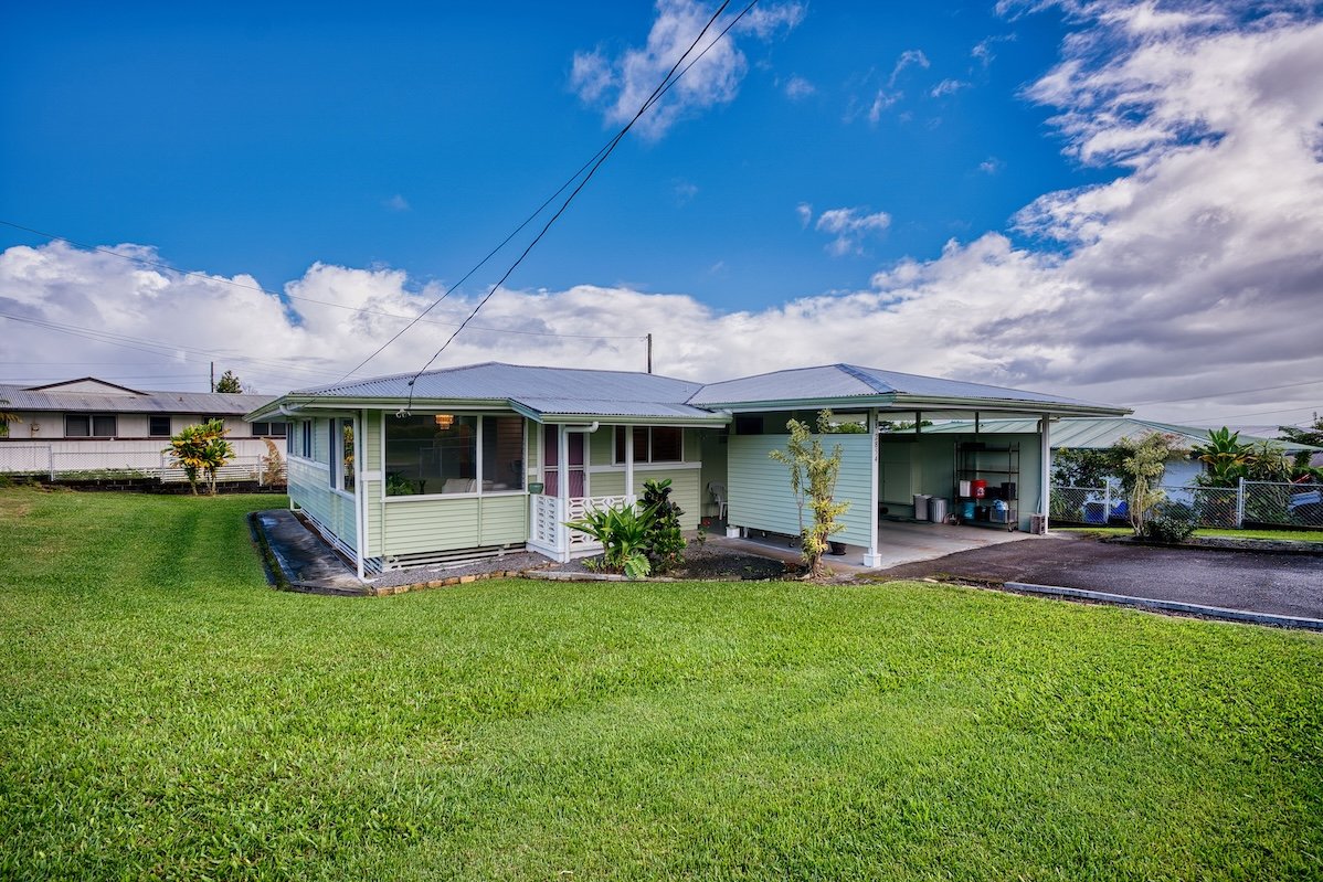 Nestled in the desirable Kulaimano Heights subdivision, this home offers timeless charm featuring hardwood flooring and unique lighting throughout, this residence exudes warmth and character.The property boasts mature, maintained landscaping and a fully fenced yard, (chain-link set on a hollow block foundation) with a gated entry, ensures privacy and security.Situated on a corner lot with a streetlight, this airy home enjoys an abundance of natural light and a serene atmosphere. The peaceful paint colors throughout create a calming and inviting environment.A standout feature of this home is the enclosed patio, completed with permit, providing additional versatile living space to enjoy Pepeekeo's tropical climate year-round. The seller has also enhanced the interior layout by removing a non-bearing wall between two bedrooms to create a spacious and inviting primary bedroom retreat.This home is a rare find, offering both quality craftsmanship and thoughtful updates in a serene and convenient location. Don’t miss the opportunity to make it yours!