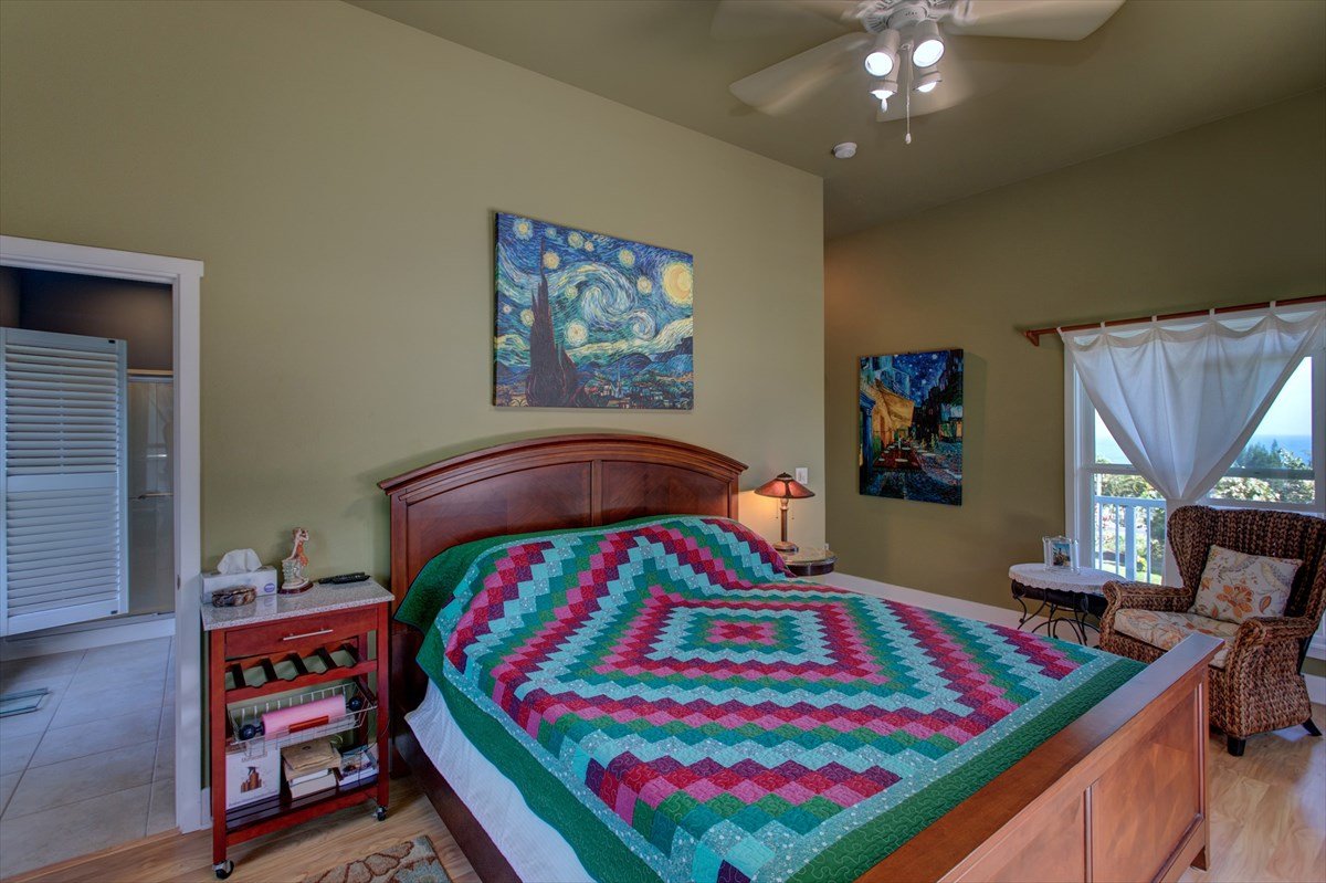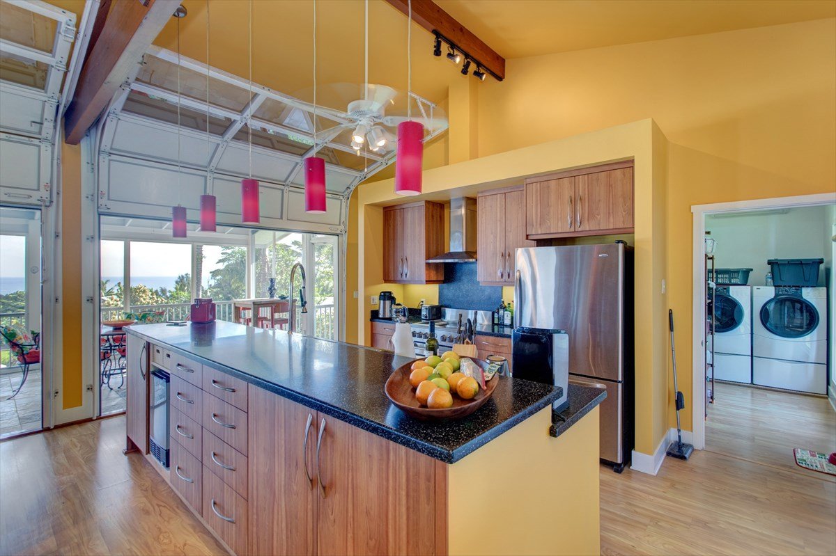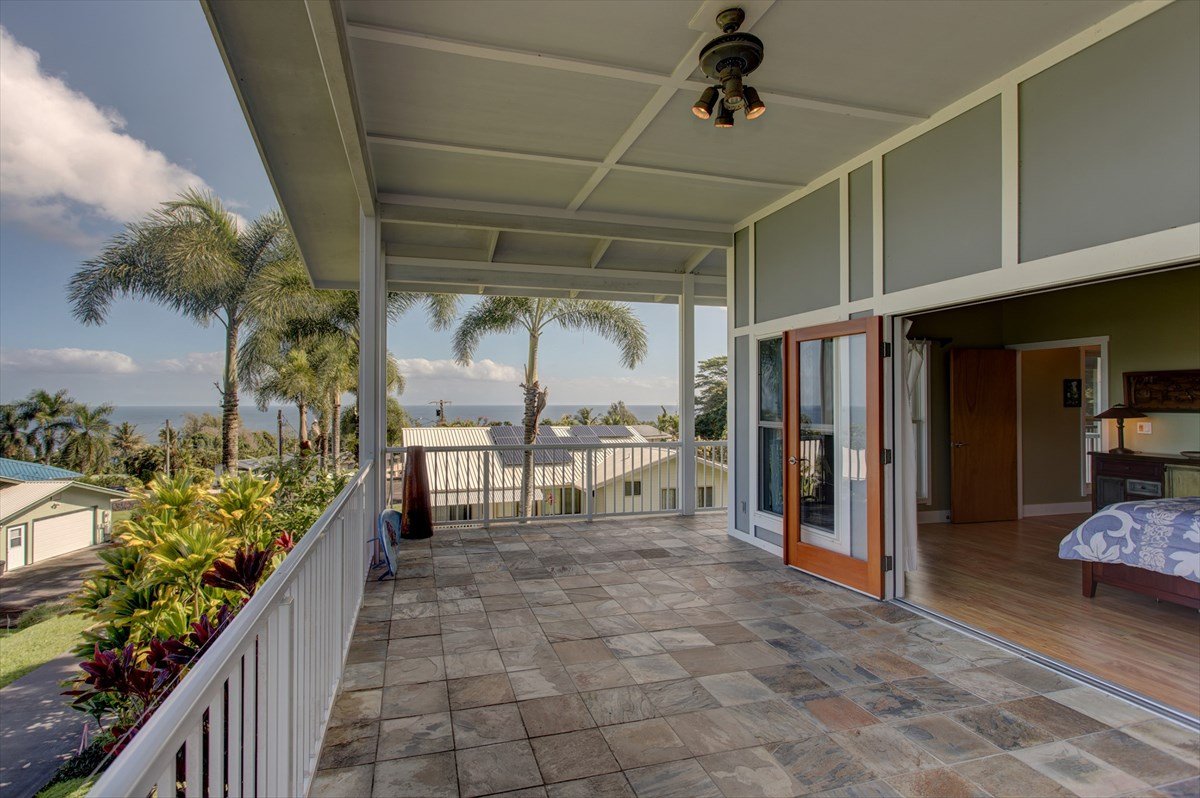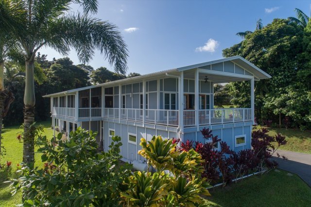 Masterful design and modern luxury are uniquely combined in this spacious custom home located only 11 miles north of Hilo Town in beautiful Honomu, with its quaint boardwalks, antique shops & eateries!Boasting almost equal indoor and outdoor living space and high ceilings throughout, this gem’s main attraction might be its gorgeous screened outdoor living deck with slate flooring & fabulous ocean and sunrise views, conveniently extended right off the stately main living area, dining and kitchen via 3 awesome high-quality roll up doors allowing for marvelous air flow, ease of movement and uninterrupted traffic flow! Just imagine the ease & FUN of entertaining here!Or, maybe your most valued highlight will be the TWO master suites on opposite sides of the home, each with their own large covered decks, spa-like baths with walk-in showers, generous climate-controlled walk-in closets and wonderful views.Or, perhaps what you will love most will be the chef’s kitchen with its sleek black counters, professional grade stainless steel appliances & plenty of luscious custom cabinetry! Or perhaps the large climate-controlled pantry and laundry off that fab kitchen!Other special highlights include a dehumidified and soundproofed library, gorgeous built-in entertainment area, impeccably exposed trusses, fruit trees, an over-sized 2 –car garage with extra bay that could be converted to additional living space, PLUS a large expanse of space underneath the home, which currently houses a spa and ping pong table, but could also serve as additional future living space!Quality construction is obviously the norm here from the cement board exterior siding and fully insulated walls and ceilings to the custom vinyl windows and doors and upscale flooring, cabinetry and counter-tops! Without a doubt, this unique home will attract the savvy investor with impeccable taste!Please be sure to view the video tour of this very special gem!