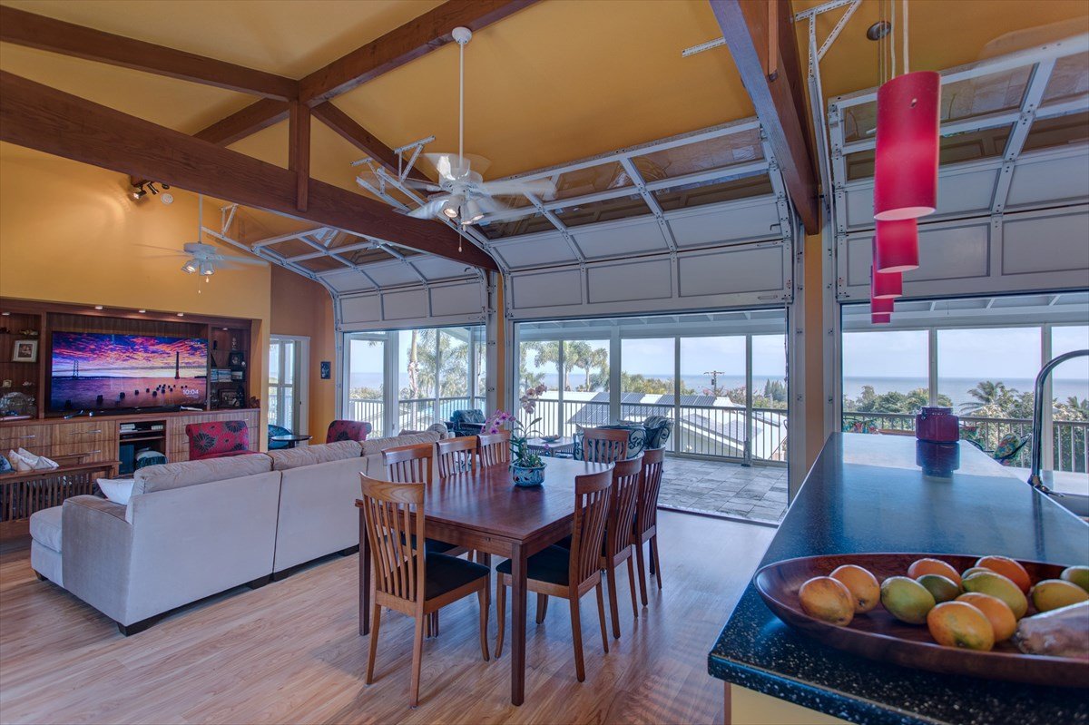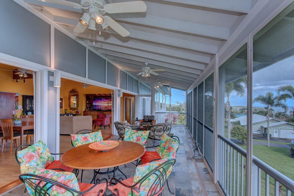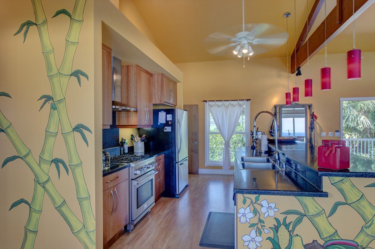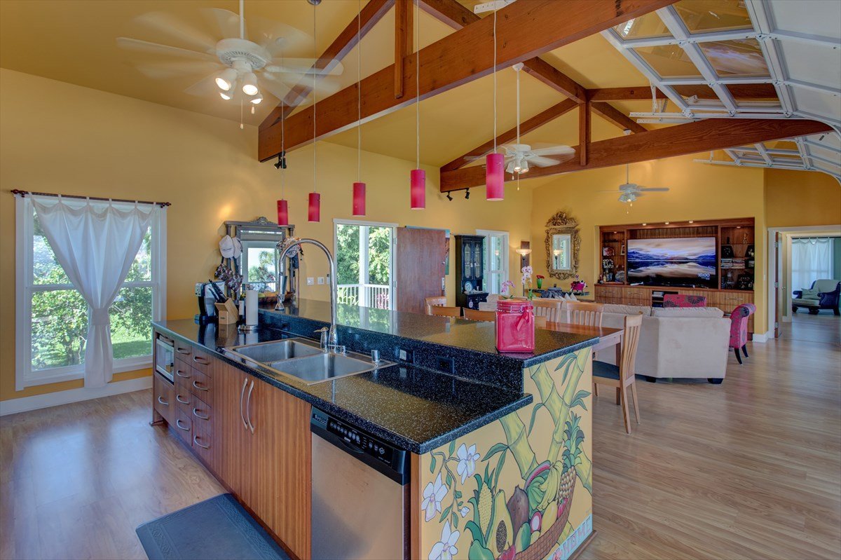 Masterful design and modern luxury are uniquely combined in this spacious custom home located only 11 miles north of Hilo Town in beautiful Honomu, with its quaint boardwalks, antique shops & eateries!Boasting almost equal indoor and outdoor living space and high ceilings throughout, this gem’s main attraction might be its gorgeous screened outdoor living deck with slate flooring & fabulous ocean and sunrise views, conveniently extended right off the stately main living area, dining and kitchen via 3 awesome high-quality roll up doors allowing for marvelous air flow, ease of movement and uninterrupted traffic flow! Just imagine the ease & FUN of entertaining here!Or, maybe your most valued highlight will be the TWO master suites on opposite sides of the home, each with their own large covered decks, spa-like baths with walk-in showers, generous climate-controlled walk-in closets and wonderful views.Or, perhaps what you will love most will be the chef’s kitchen with its sleek black counters, professional grade stainless steel appliances & plenty of luscious custom cabinetry! Or perhaps the large climate-controlled pantry and laundry off that fab kitchen!Other special highlights include a dehumidified and soundproofed library, gorgeous built-in entertainment area, impeccably exposed trusses, fruit trees, an over-sized 2 –car garage with extra bay that could be converted to additional living space, PLUS a large expanse of space underneath the home, which currently houses a spa and ping pong table, but could also serve as additional future living space!Quality construction is obviously the norm here from the cement board exterior siding and fully insulated walls and ceilings to the custom vinyl windows and doors and upscale flooring, cabinetry and counter-tops! Without a doubt, this unique home will attract the savvy investor with impeccable taste!Please be sure to view the video tour of this very special gem!