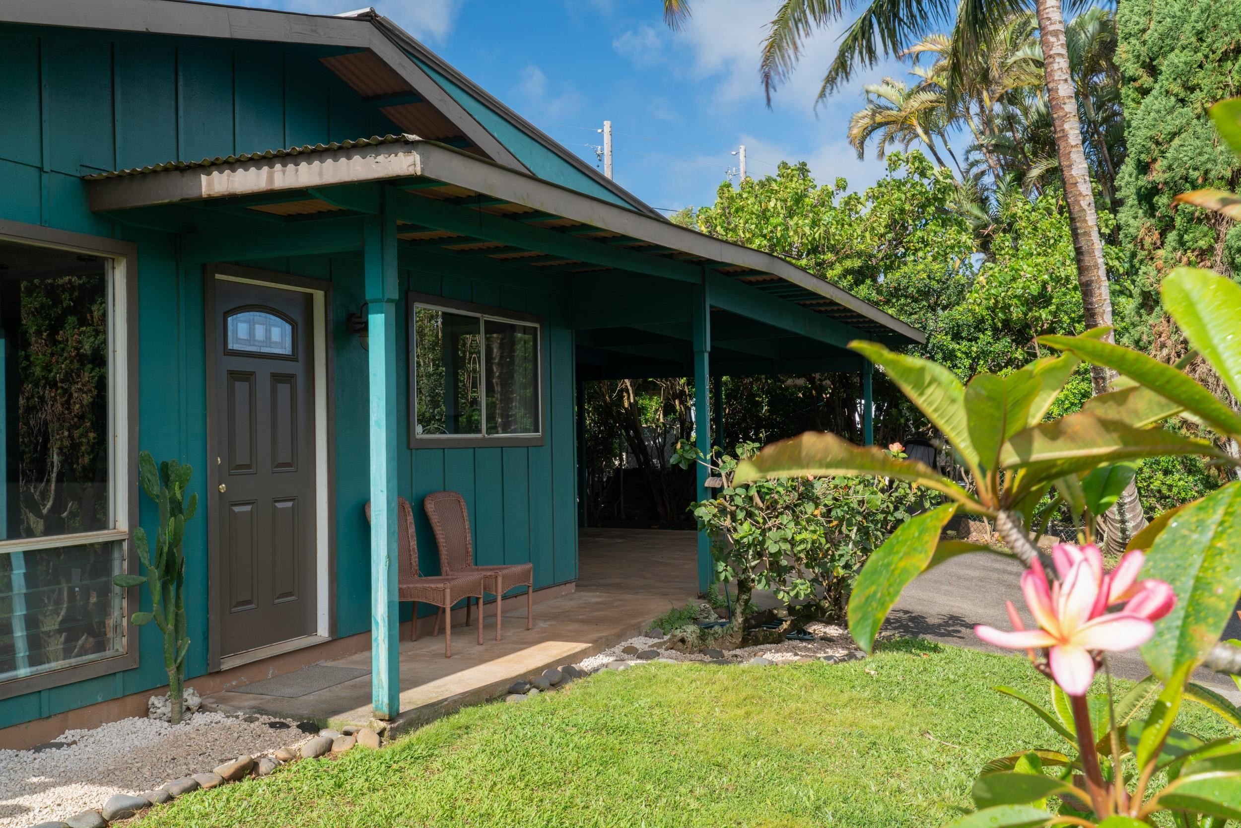 Introducing this charming Haiku home and detached art studio in a great location! Just off Hana Hwy close to the Haiku Community Center and Park and the Haiku Elementary, this property is close to Haiku town, 10 minutes to Paia and just 21 minutes to the airport. Even better though, Hookipa beach park is just down the road. The 3 bedroom 1 bath main home features hardwood floors, granite counter tops, and a brand new bathroom vanity. It also has a separate laundry room and storage/work room off the carport. The art studio sits behind the main house and is a quaint unit with a loft that boasts a huge lanai for indoor/outdoor activities. It even has a peek-a-boo ocean view. The yard is landscaped with many Hawaiian flowers and fruit trees and the vegetable garden beds are set up and waiting to be planted. There is also an outdoor shower in the backyard which is perfect for coming home sandy and salty from the beach, or enjoying all the other activities this beautiful Hawaiian lifestyle is all about.