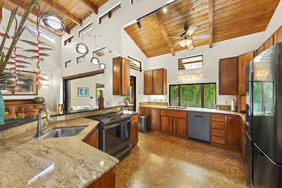 The home has been thoughtfully designed with an emphasis on accessibility, airflow, comfort, and energy efficiency. The 20 SunPower PV panels are fully owned, with a transferable NEM (net meter) agreement with HELCO.