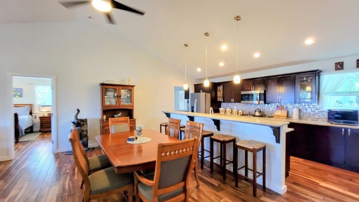 It is not very often that a home in the Hakalau Plantation Village becomes available and there is no mystery why they do not remain available for long. To start with, the Hakalau Plantation Village is located along the Hilo-Hamakua coast in the heart of the Hamakua Heritage Corridor. This small community has paved roads, county water, underground utilities, CC&Rs, pride of ownership, ocean and mountain views. Peaceful, quiet, private. When you need the convenience of Hilo, it is only fifteen to twenty minutes away where you can find shopping, financial services, government services, the University of Hawaii at Hilo, and the Hilo International Airport. One look at this custom home and you will know it is the cream of the crop sitting on one of the highest parcels in the neighborhood giving it fantastic views. Lava rock walls and lush tropical landscaping define the property boundaries. The sloped concrete driveway leads to parking and a large two-car garage that is not visible from the road.Within the home, the custom floor plan features three bedrooms and two bathrooms - the owner's suite is separated from the other bedrooms by the main living space. The central living space is where this home shines - open kitchen and living space share vaulted ceilings with large windows and access to the front covered front lanai that looks out over the village and the Pacific Ocean. If you want to end your day in a more private setting, retreat to the fenced patio and spa in the back of the home. Or, enjoy the grass of the backyard, pick and eat fruit (avocado, guava, pineapple, and papaya to name a few) right from the garden. Come have a look, it can all be yours.
