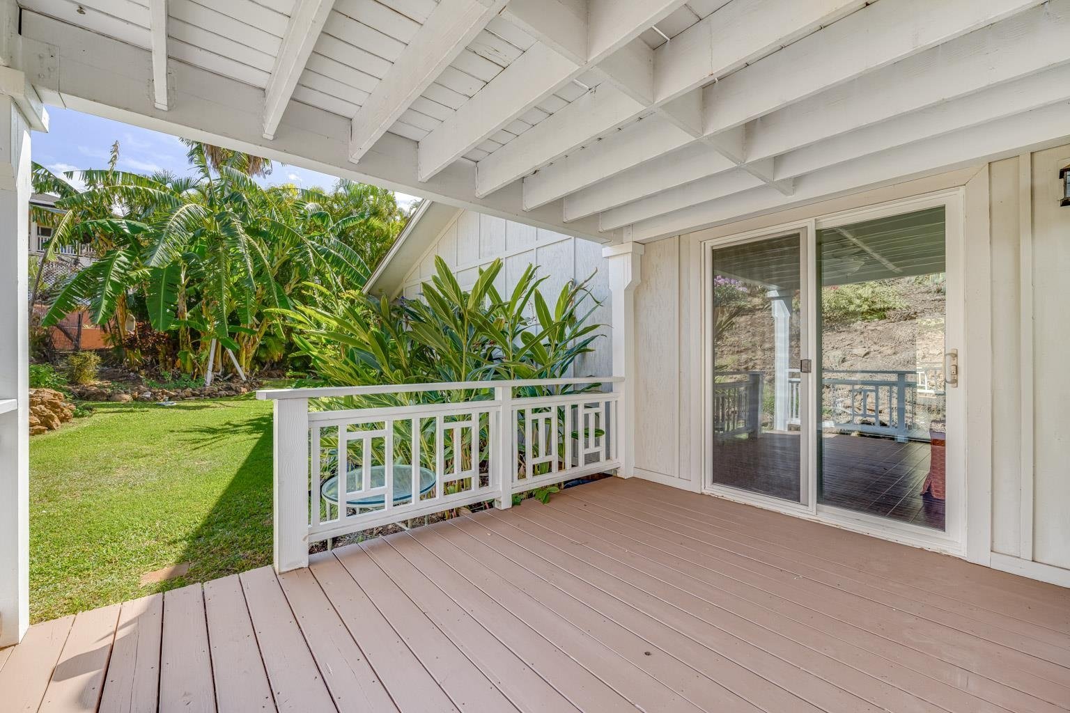 This Maui Meadows property with an ocean view boasts 4 bedrooms and 4 bathrooms, kitchen, family room and a downstairs game room. In addition, the new Ohana (completion 2021) provides for income opportunities or just that extra space for company. Nestled in mature foliage with room for a pool, this home is perfect for entertaining.