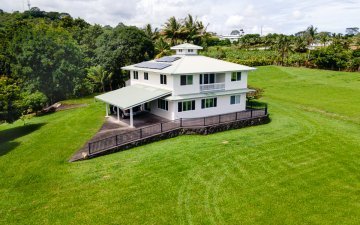 Discover Lai Nani, a one-of-a-kind oceanfront retreat where luxury meets the untouched beauty of the Hamakua Coast. This private 2.06-acre estate offers over 5,000 sq ft of living space with 7 beds, 6 full baths, and 4 half baths. Three separate guest houses, each with a kitchenette and bathroom, are ideal for hosting visitors, private retreats, or as luxury vacation rentals. Resort-style amenities feature a renovated pool with waterfall, a spa, tiki bar, and 1,062 of spacious covered lanai with a gas grill & wet bar for outdoor entertaining. The elevated main home is designed to maximize panoramic ocean views—perfect sunrises, whale watching, and stargazing. The lush, manicured grounds feature over 150 royal palms, a koi pond, rare & exotic tropical plants, peaceful walkways, and a private road that loops the entire property. Recent upgrades include a new sauna, owned photovoltaic solar panels, plush carpeting, and a private well. Perfectly situated between charming Hilo (20 min) and scenic Waimea (30 min), and secured by a gated entrance and security system, Lai Nani offers an exceptional blend of comfort, privacy, and investment potential on Hawai‘i’s most dramatic coastline.