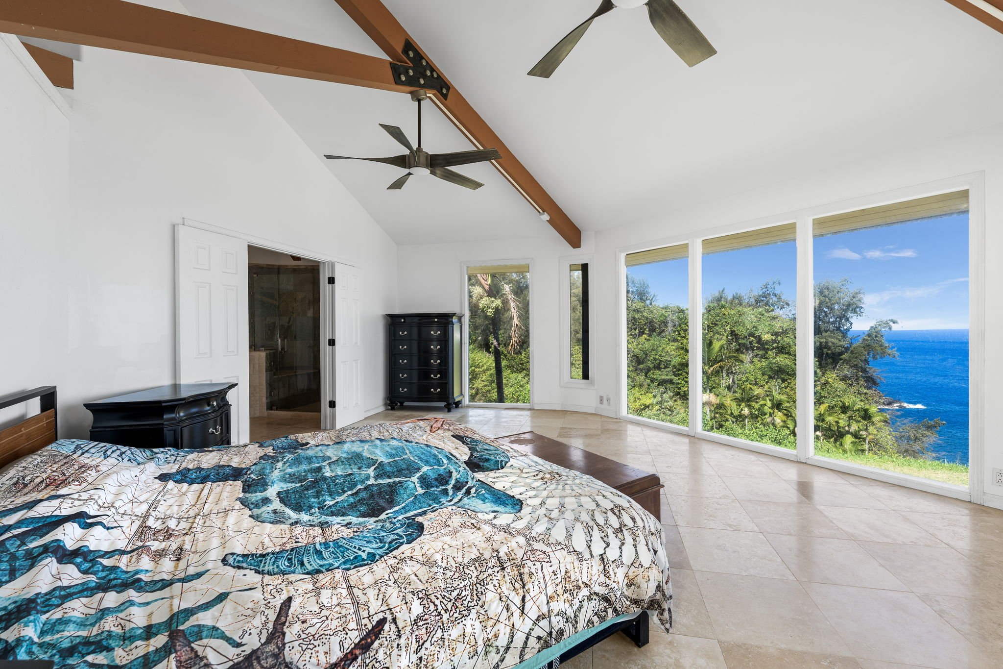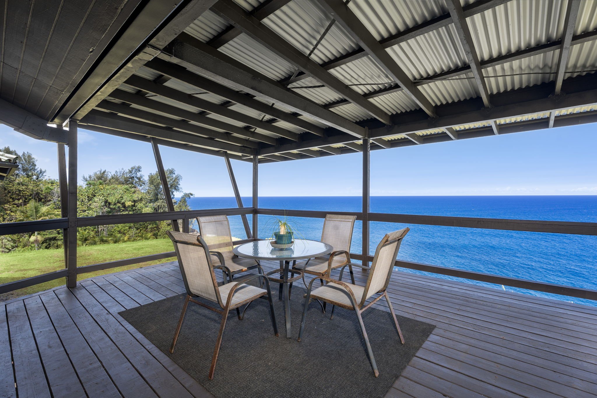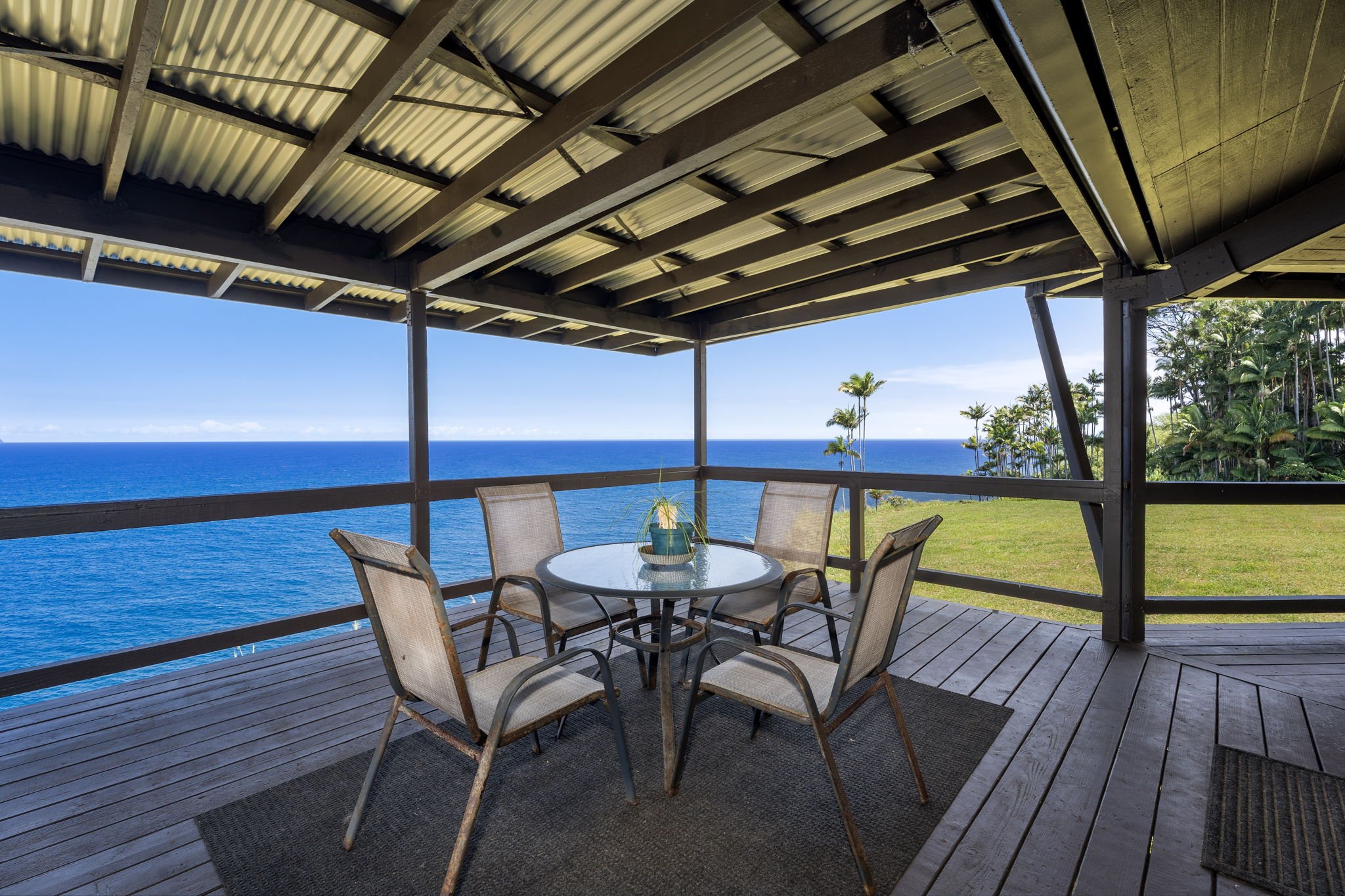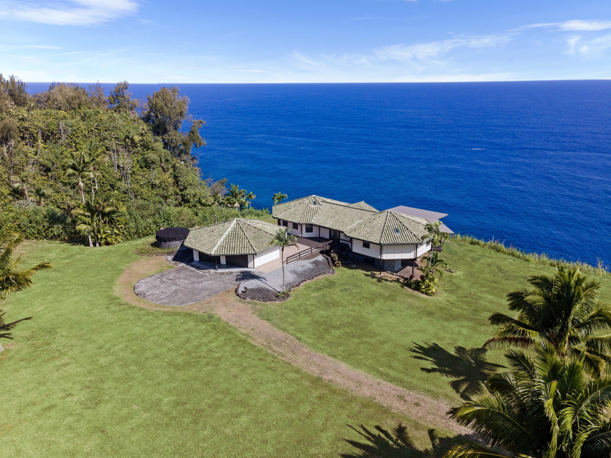 Discover your private haven with this exceptional oceanfront property, featuring approximately 2,600 feet of ocean frontage. This home offers unparalleled privacy, with no neighbors in sight.From the covered deck, you'll be greeted by a breathtaking 180-degree view of the Pacific Ocean. Starting in October and often seen from December through April, its a whale watchers haven. Enjoy whales breaching and slapping their tails for several months every year.An interesting highlight of this property is that it's located where cruise ships enter the Big Island. You can watch the ships from a point of light on the ocean to full side views as they come and go.The kitchen is a chef's delight, equipped with modern appliances and ample counter space. The inviting living area encourages relaxation, while the large windows frame the picturesque landscape.According to the owners, a path leads down to a waterfall where you can swim in one of .mulitple natural pools or collect prawns.The yard is designed for ease and enjoyment. It features a well-maintained landscape and is easy to walk while providing a bountiful source of fresh produce, boasting an abundance of fruit trees and mature plants.Retreat to the primary bedroom, where the soothing sound of the waves provides a calming backdrop for restful nights. Additional bedrooms offer comfort and versatility, ideal for guests or a growing family.The property is equipped with gigabit fiber internet, ideal for remote workers.Access to the home is through a private, electric, custom-gated entry.