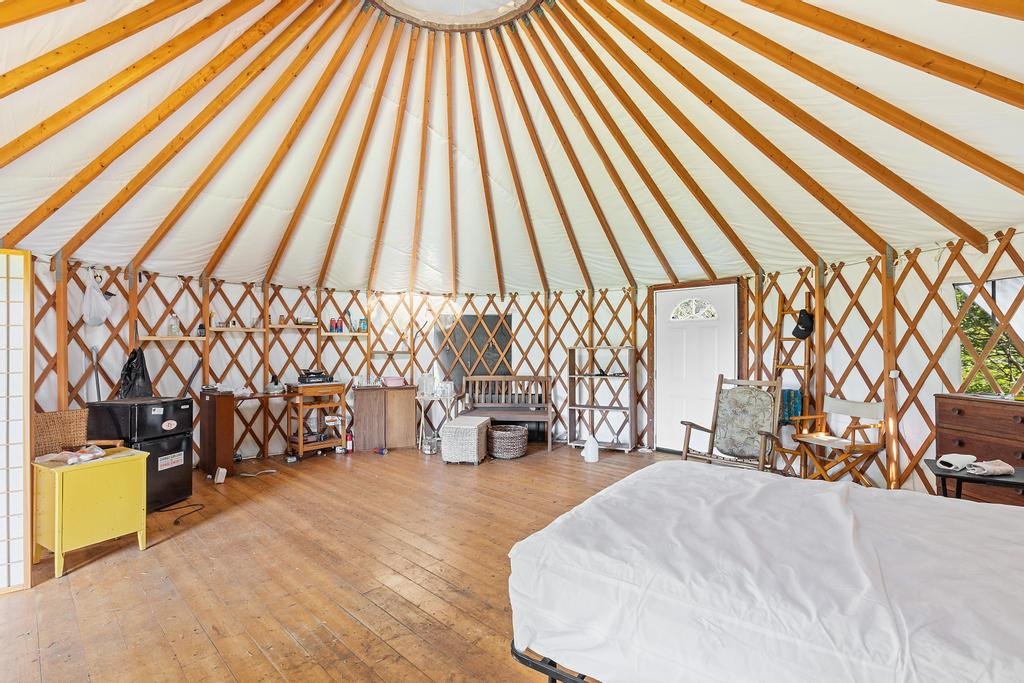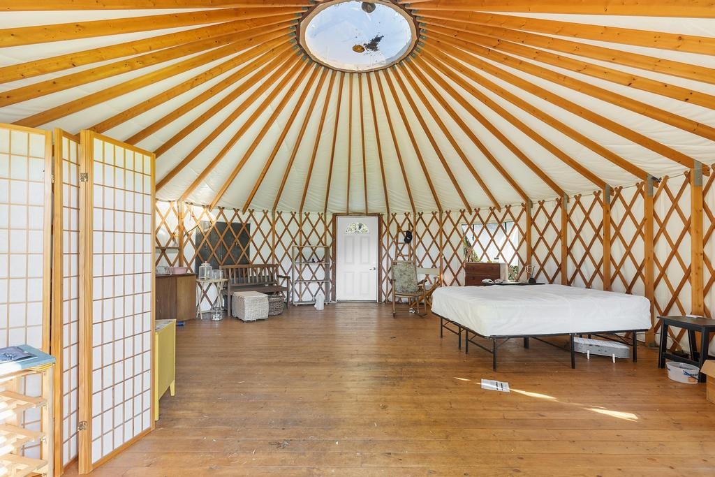 A separate furnished yurt is approx. 452 sqft. There are 2 more small cabins, a workshop of approx. 500sqft and 2 greenhouses of approx. 1,000sqft each.
