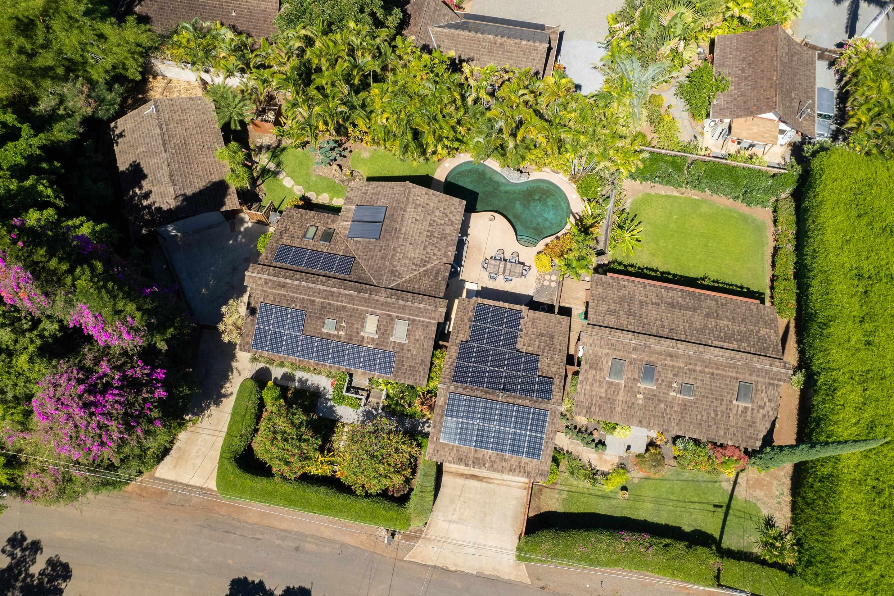 Sweet Maui Meadows house, cottage and pool in private fenced yard. Terrific landscaping with separate garage on 1/2 acre lot. Gourmet kitchen. Energy efficient 40 panel (approx)photo-voltaic system. Room to expand on this long rectangular corner lot. Property is view impaired so don't come looking for a big view, just a very cool property that has a magical feel to it. CORRECT ADDRESS IS 3210 LANINA STREET, Tax records show 776 Kupulau Dr.