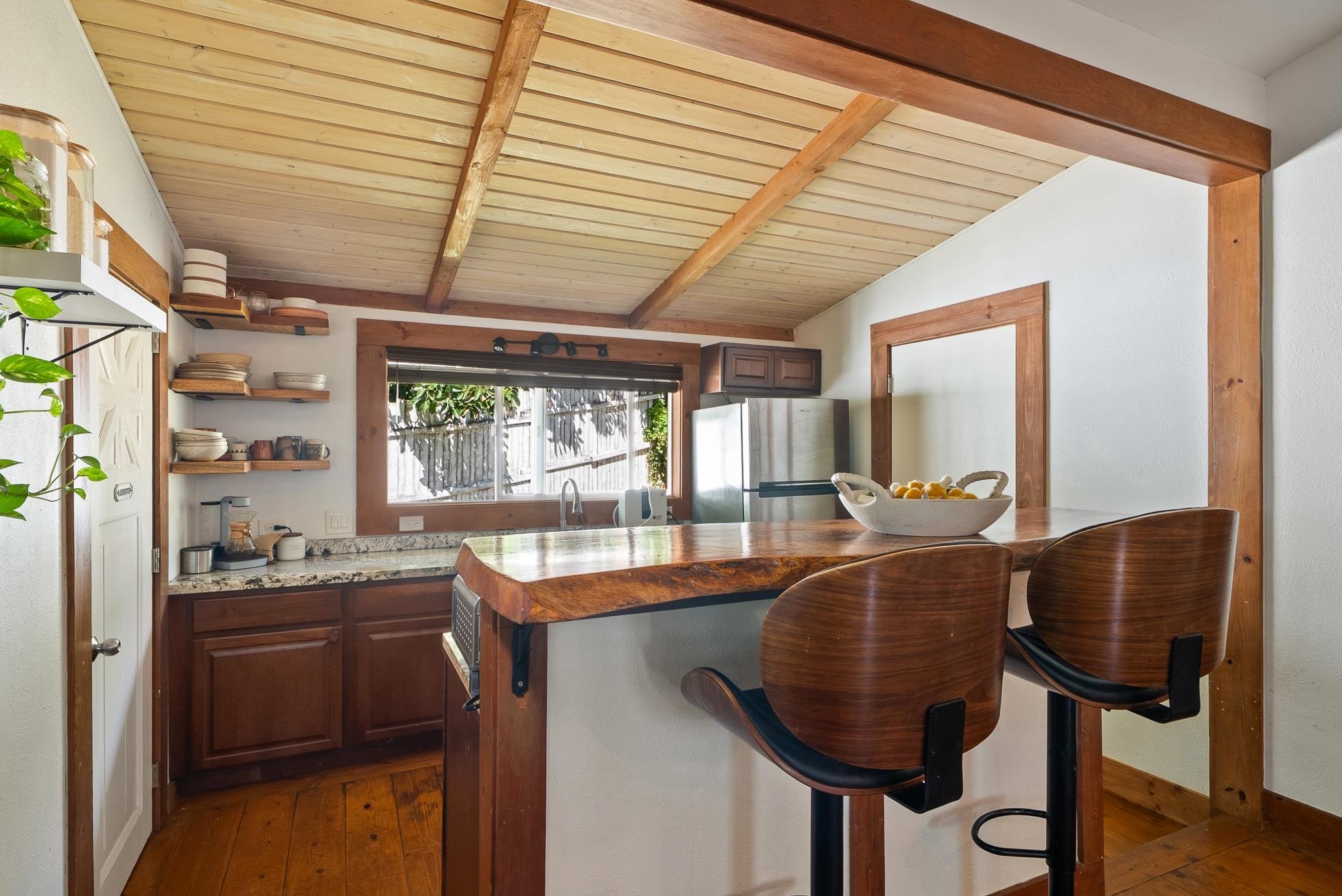 Charming single-family home at 323 West Kuiaha offers a great opportunity with its thoughtful layout. Spanning approx. 1,166 square feet, the home features 2 bedrooms and 2 bathrooms. The home retains its classic 1920s plantation-style charm, enhanced by a meticulous renovation completed in 2020. As you enter, the solid pine floors and high ceilings with large wood beams create an inviting and open atmosphere. The kitchen stands out with mango wood countertops and shelves, offering a warm, organic feel that complements the home’s natural surroundings. Alongside the bedrooms and bathrooms, an additional office or flex space provides versatility for work or hobbies. The bright living areas extend seamlessly to a spacious covered patio through French doors, where Trex composite decking overlooks a manageable yard. This outdoor space is perfect for gardening enthusiasts or those who simply enjoy the peaceful outdoors. Conveniently situated near the Pauwela Cannery, this property allows easy access to local dining and shopping.