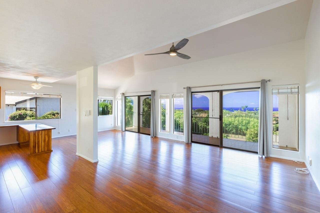 Wonderful ocean views from this Maui Meadows home! The welcoming entry to the home has high open ceiling with a curved stairway going to the main living area that captures fantastic ocean views!! The kitchen has Koa cabinets, granite counters, newer appliances and good work space plus a Koa built-in eating area. The living room opens to the covered lanai and captures great trade wind breezes and sunsets!! The spacious master bedroom has great views too and there is a walk-in closet and updated master bath. The main upper level also has 2 additional bedrooms and 2nd bath with new sinks and granite countertop. The lower level of the home has a family room & office, large bedroom, full bath, nicely remodeled kitchenette and a large laundry / storage room. The well-built home has stucco exterior, 2 whole house fans, a carport and an extra storage unit outside. A new septic system was just installed for the main house. The one-bedroom cottage has had a cute remodel and is very private with separate driveway to the lower part of the half-acre lot. Great location near the end of the cul de sac the property also has grapefruit, orange, lilikoi, lemon and banana plants to enjoy!