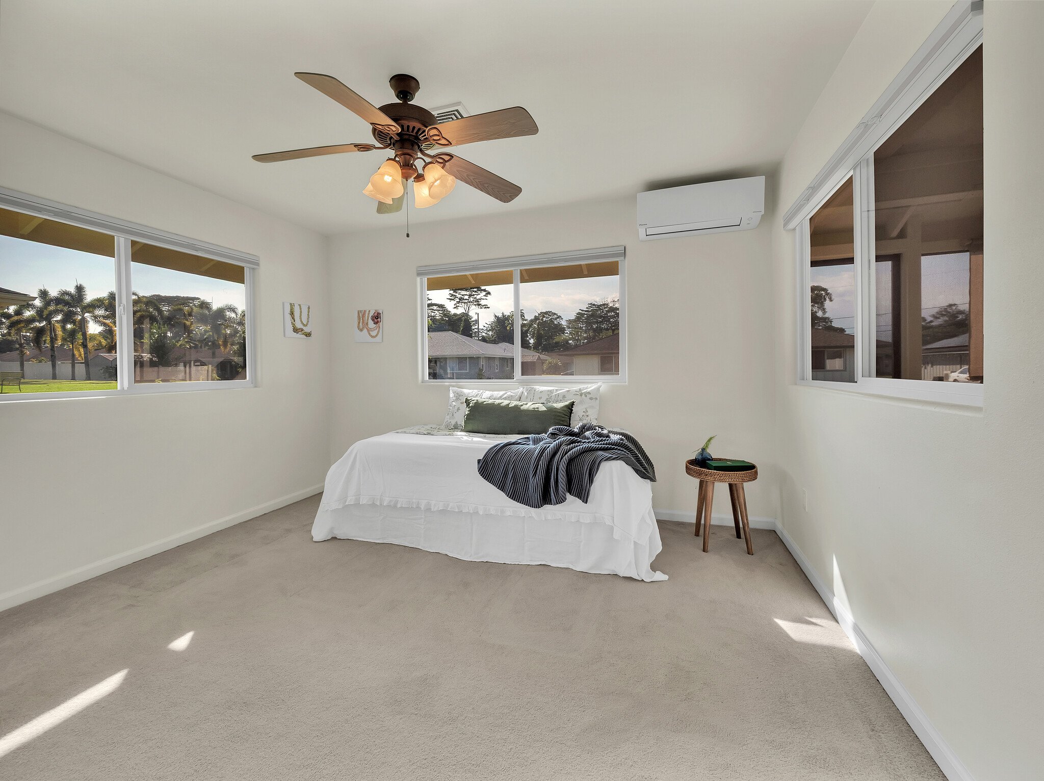 This former model home in Hilolani Estates delivers comfort, convenience, and thoughtful upgrades in a quiet, walkable neighborhood with sidewalks and just minutes from major shopping, schools, parks, and restaurants. Set on a single level, the 3 bedroom, 2 bath home features an open living area with vaulted ceilings and a large granite island that creates an easy flow for everyday living and entertaining. The split floor plan provides privacy for all bedrooms. The primary suite includes its own AC, a walk-in closet, and a double-sink vanity. Natural breezes, ceiling fans, and split AC keep the home comfortable year-round. The kitchen offers generous cabinet space and updated appliances. Step from the living room to a fully screened and tiled lanai, perfect for enjoying outdoor living without the bugs. The home is equipped with 22 fully owned solar panels and 2 Tesla Powerwall batteries for dependable, efficient energy. Low-maintenance landscaping surrounds the property for easy upkeep. From the two-car garage, enter through the laundry room directly into the kitchen for smooth everyday access. The garage features automatic doors, a storage closet, and painted floor. This home blends island comfort with practical upgrades, ready for its next owner to move in and enjoy. *Check out the Listing Video Here: https://player.vimeo.com/video/1146236279