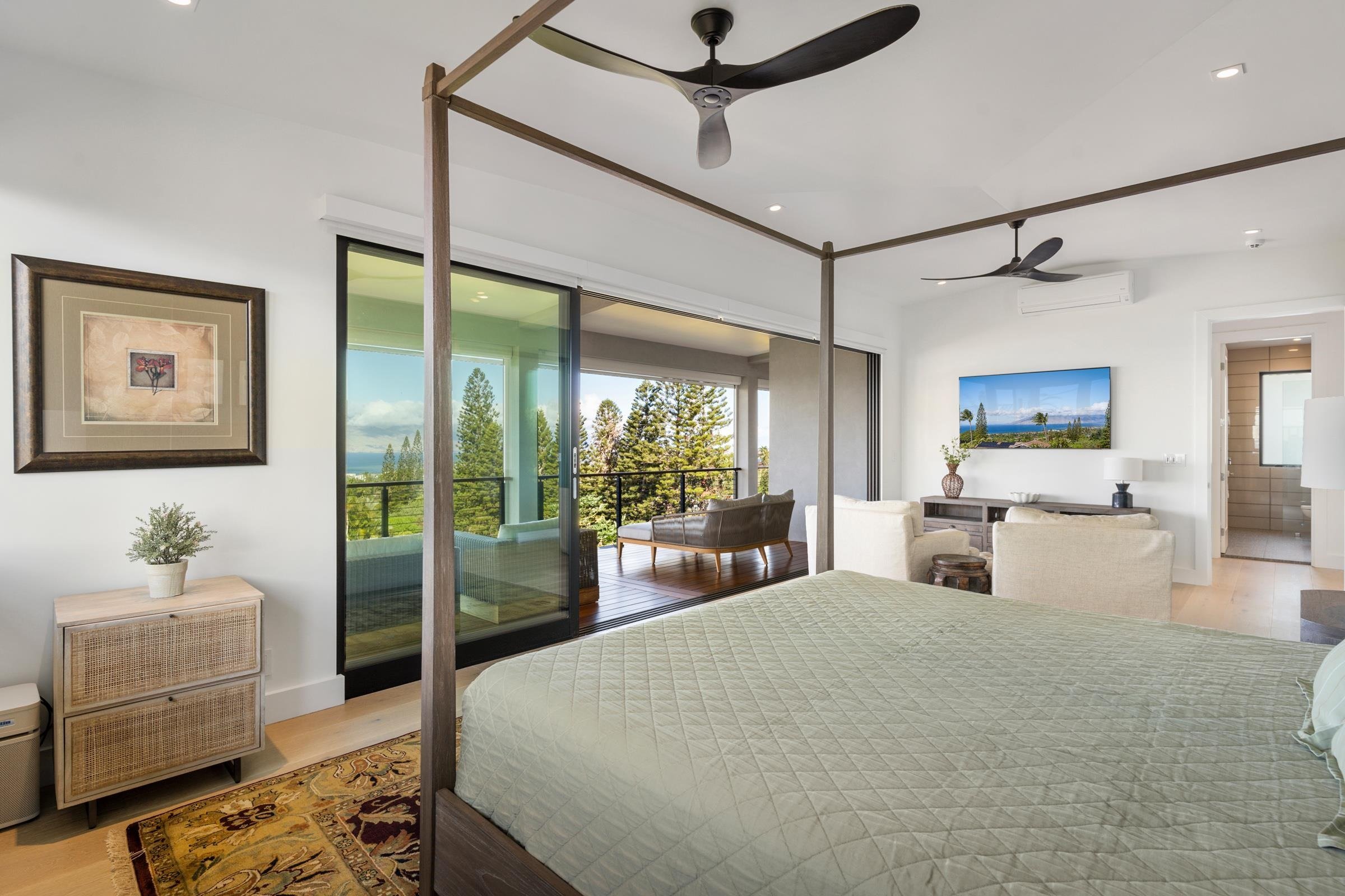 Contemporary design meets classic Hawaiian beauty in this stunning Maui Meadows estate. Step into a new luxury home with furnishings expertly styled by a professional interior designer and sweeping ocean views. A newly constructed stacked lava rock wall is enhanced with established tropical landscaping around a level grassy yard. Additional improvements include a 35-panel photovoltaic system with 2 PWR cell Generac batteries and electric car charger, remote sunshades, alarm system, whole house water softener, and reverse osmosis system. No detail has been overlooked. The detached Ohana was built in 1980. It has an entrance off of Kaleo Place maintaining a strong sense of privacy between the two homes.