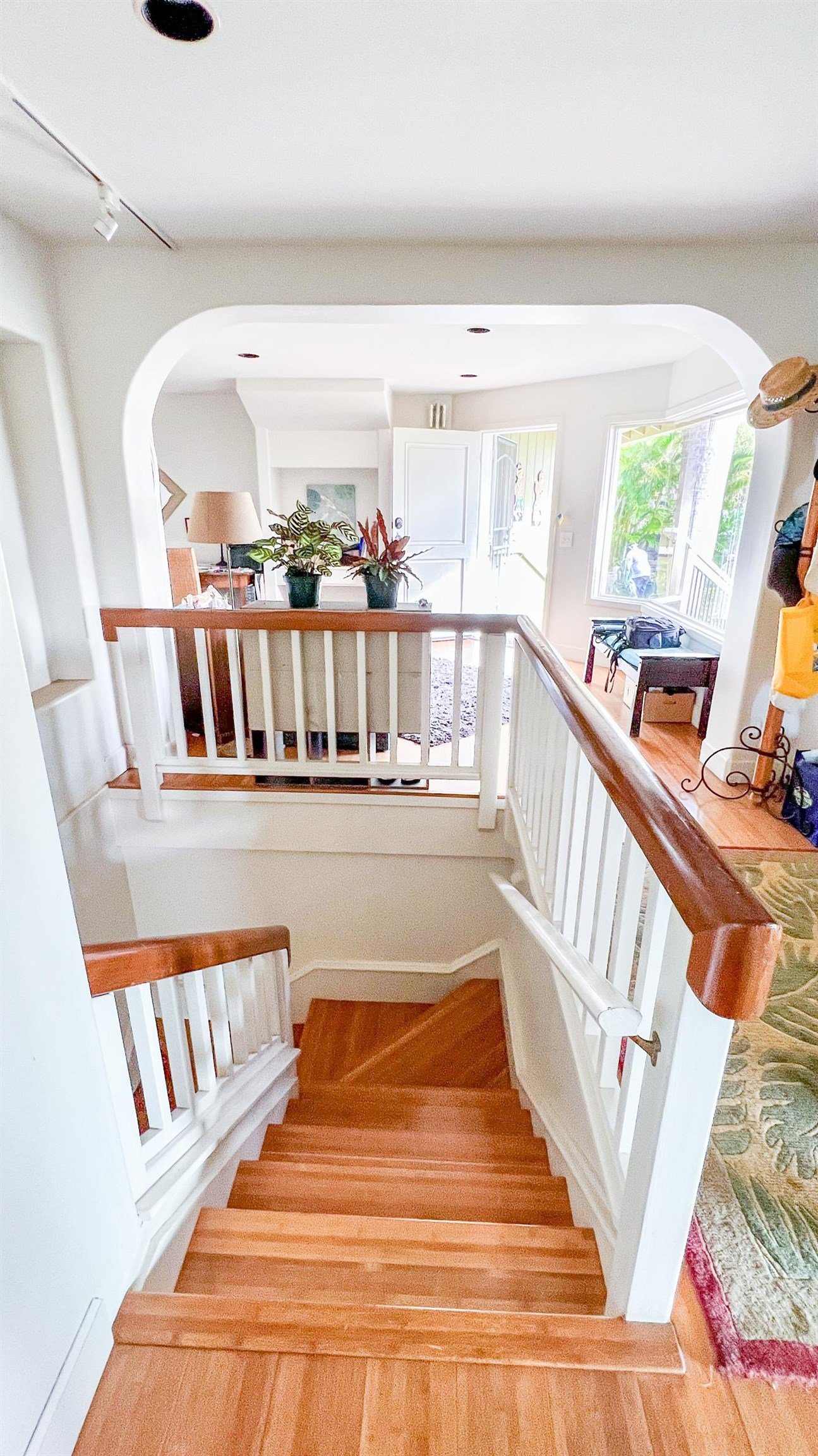 This property is the STAR of Hokulani St. As you enter the beautiful rock walled courtyard, you will see landscaping that includes a Koi pond and water feature which has a tropical feel. This property features 5 bedrooms and 5 baths. With so many extras....It's a must see!! Unique design with 3 bedrooms and 3 baths in the main area with the large primary bedroom upstairs. The beautiful living room, dining room, and kitchen has two lanais - one off the living room that looks out to west Maui and the ocean and the other in the tropical front garden. There is a $5,000 drinking water filter system and two mini split AC units for your comfort. Downstairs there are two more bedrooms (this area has its own seperate entrance), laundry, two storage closets, a cedar sauna and a bath with a jacuzzi tub. So many options of how to utilize the space including potential income! There is also a 2 car garage with a separate lockable storage space. This property has a large avocado tree, papaya, lemon and tangerine trees and raised garden beds in the back on a drip system. This house is close to shopping, schools, banks and the post office and only 20 minutes to Kahului and the airport. Enjoy fresh air, sunshine and amazing views…come take a look!