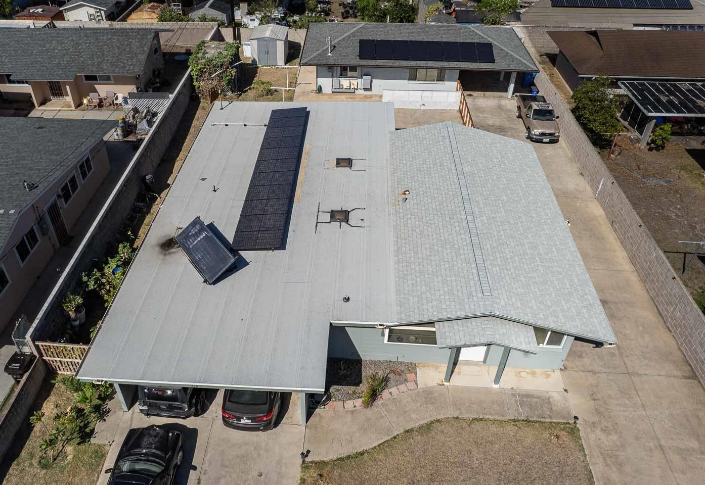 This 4-bedroom/2-bathroom house and cottage in the heart of Kahului sits on a large lot of 10,640 sf of land, a great property for homeowner of investor. Grid-tied PV system with Tesla Battery back up was installed in 2022, through a Sunrun lease with 11 panels on main home and 8 panels on cottage, according to permit plans. The original home's original floorplan was 3-bedroom/1-bathroom, and was extended with permits to include another bedroom, bathroom, and family room in 1986. The main home had a new roof installed in 2014. The cottage was built in 2005 and has 2-bedrooms/1-bathroom, central a/c and its own washer/dryer, as well as its own driveway and carport. LVP flooring installed in sections of the main home in 2021. Home was fumigated in 2021. Schedule a showing appointment with your favorite Realtor!