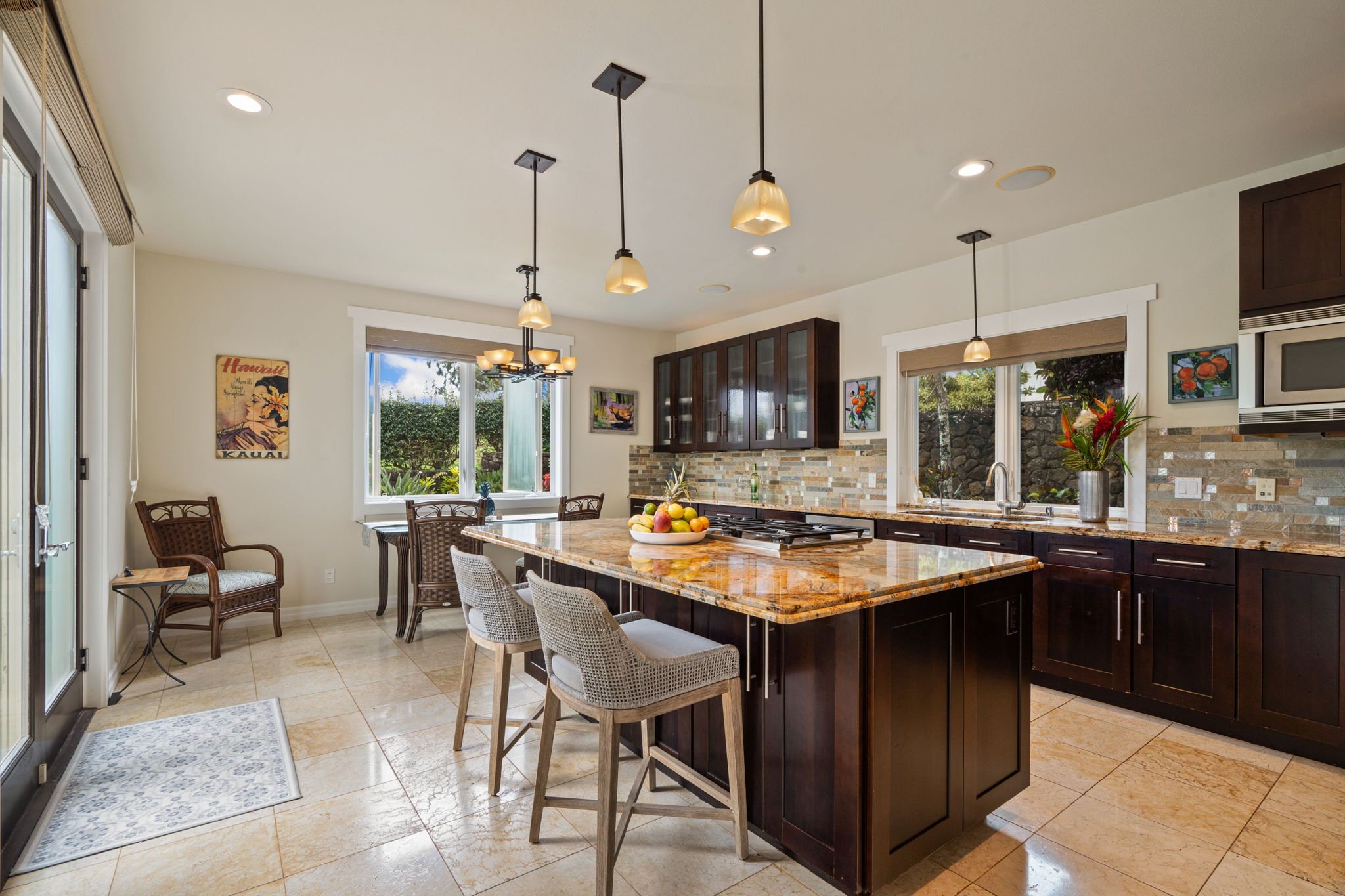This 3,752-square-foot residence is thoughtfully designed for modern living, with ample storage, walk-in closets in every bedroom, and 9ft ceilings throughout. Additional highlights include built-in decorative soapstone carvings, a custom-made front door, exotic leaf etchings on glass doors, an oversized 2-car garage and impeccable mature landscaping. The back yard has a large entertaining patio and a bamboo gate offering access to Lolo Road for serene strolls or invigorating morning runs.