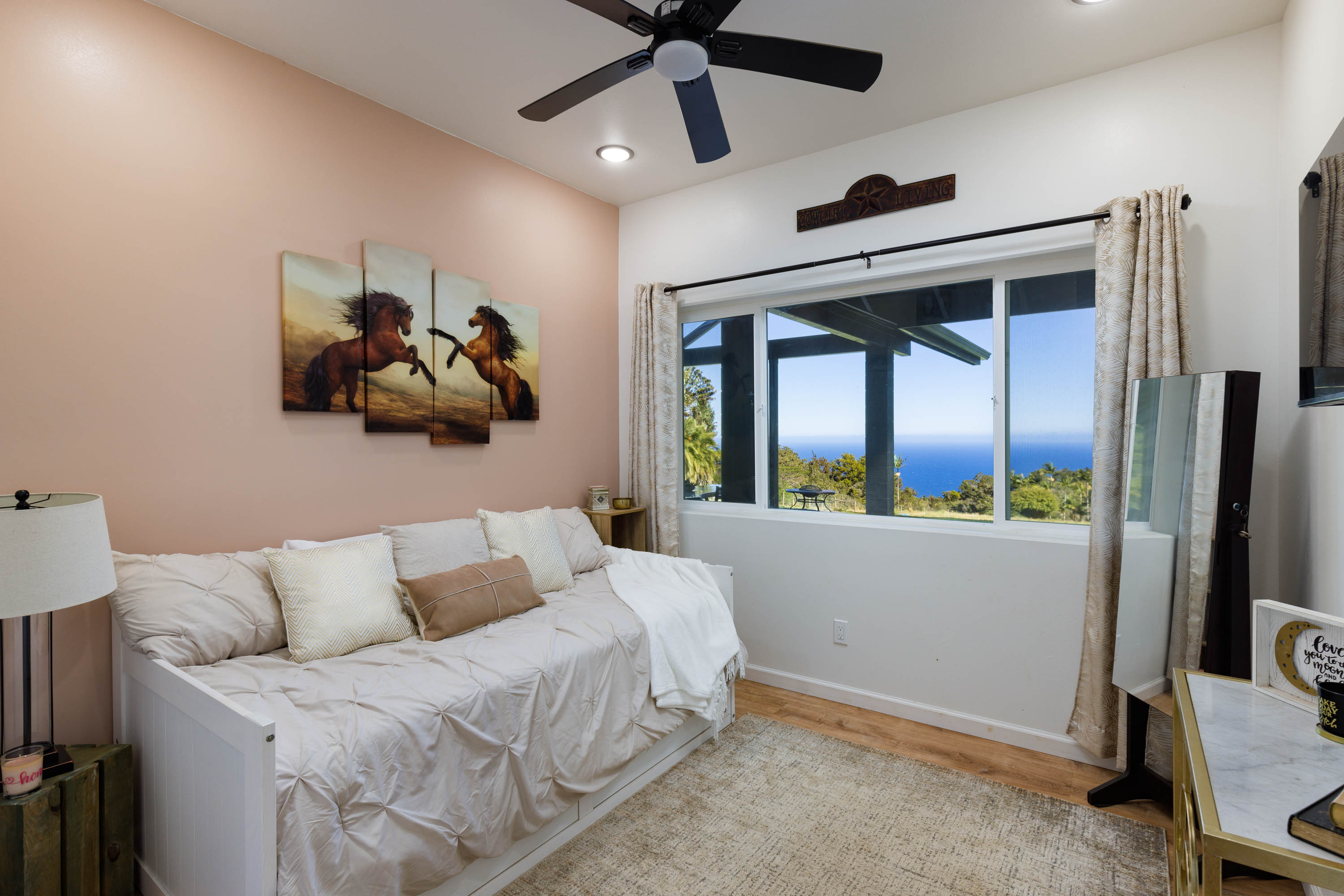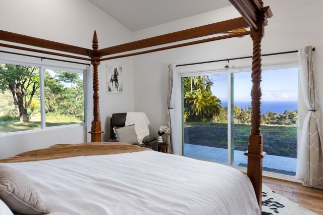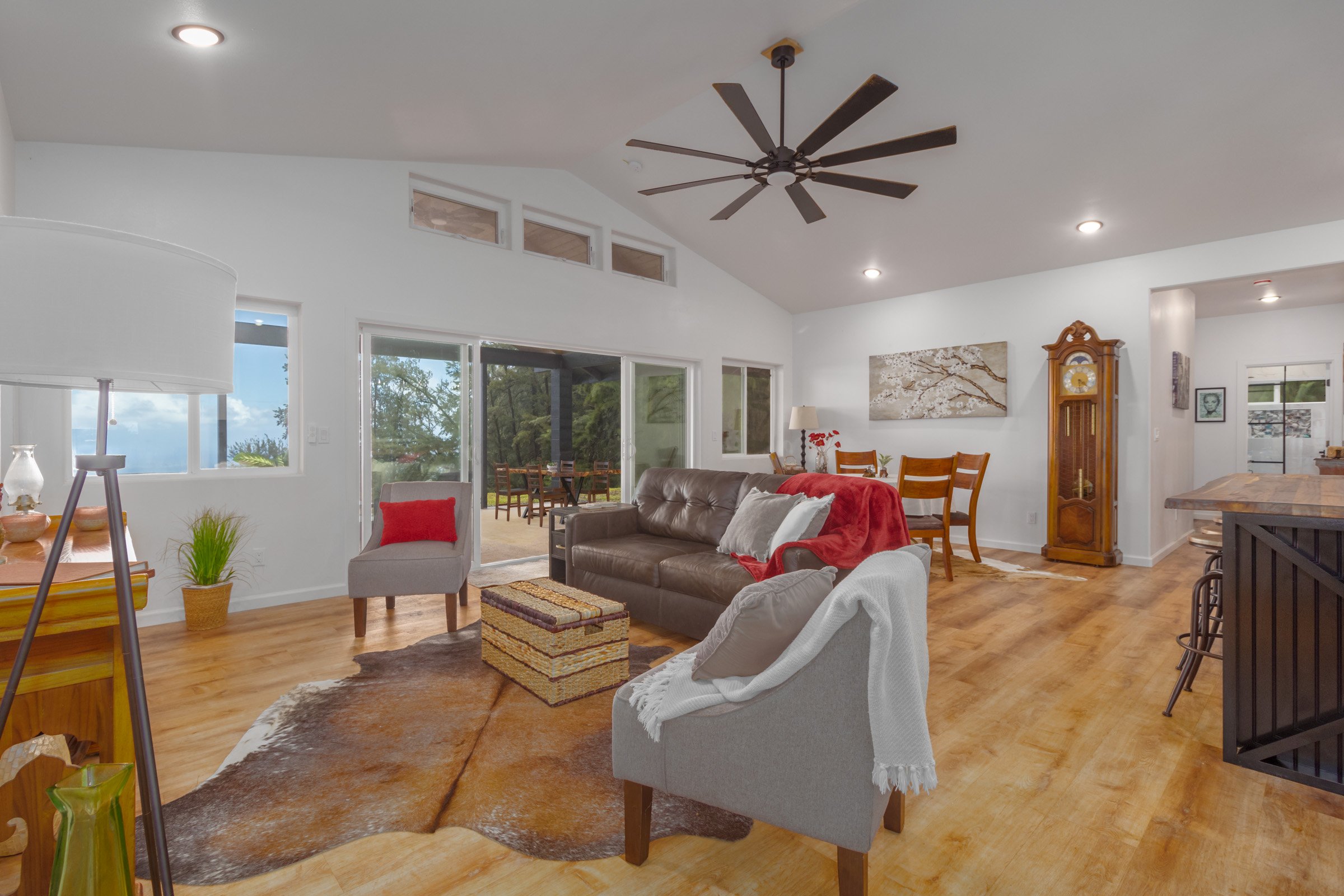 Nestled along a quaint country road, this newly built custom home boasts 5 bedrooms & 3 bathrooms. At its heart is a welcoming kitchen featuring butcher block counters, an expansive island, farmhouse sink, & custom cabinetry. The primary suite impresses w/ vaulted ceilings, a spacious walk-in closet, & an indulgent bathroom. Three of the bedrooms & the living area opens onto the large covered lanai, blending indoor outdoor living. A private 5th bedroom, separated by the 2-car garage, includes a kitchenette & ensuite bath—ideal for guests.